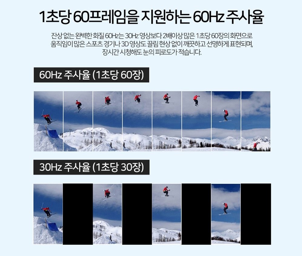 HDMI 2.0 버전은 18Gbps 까지 대역폭을 증가시켜 초당 60프레임을 지원하는 60Hz 주사율을 지원합니다.