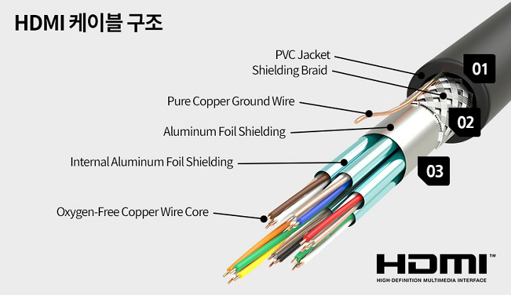 HMDI 케이블은 영상, 오디오, 이더넷 네트워크의 데이터를 전송하는 케이블 방식입니다.