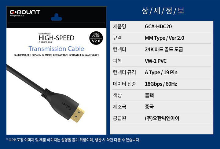 [G.MOUNT] Ultra HDMI 케이블 V2.0(HDC) 입니다.
