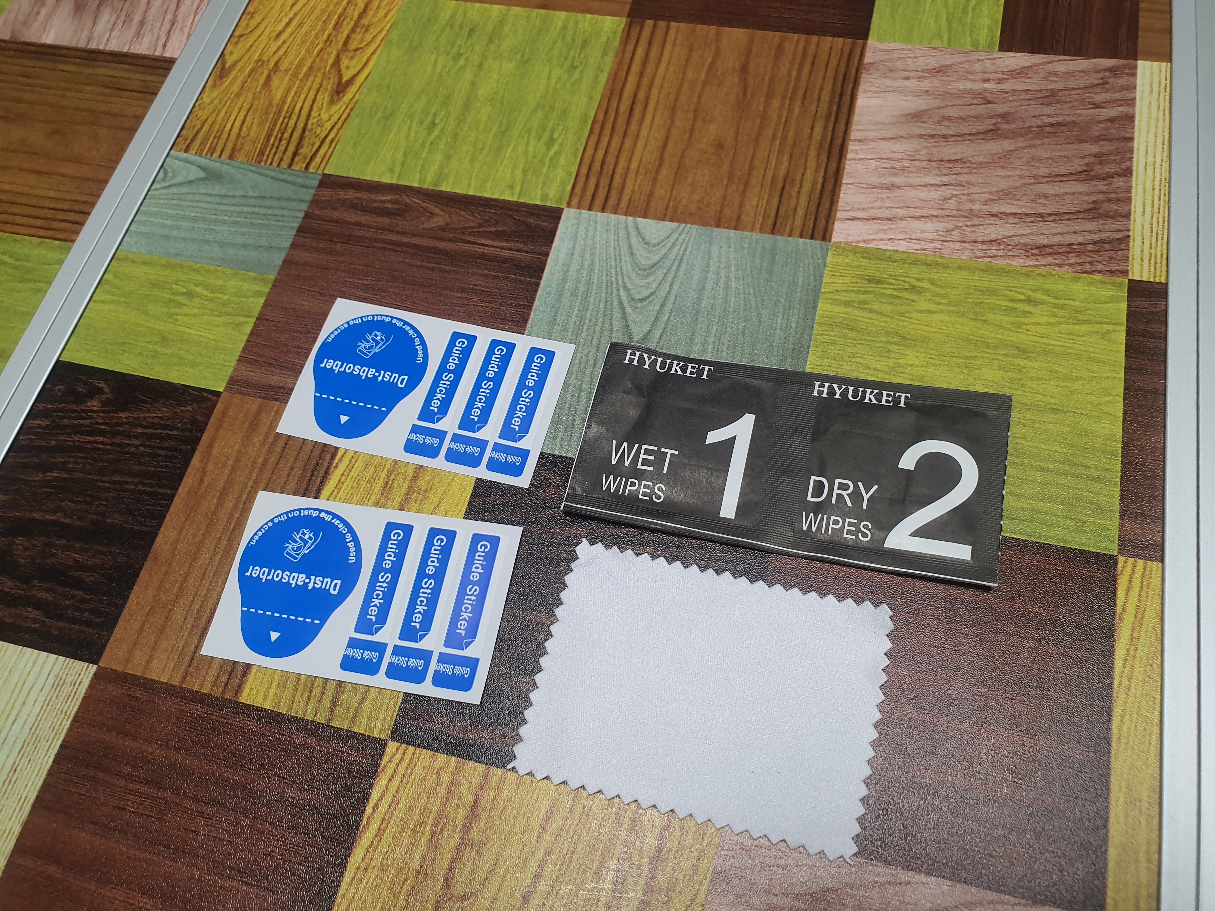 강화유리 필름 세트 - 강화유리, 접착액, 유막생성오일, UV액상(점착액), 흡수패드, 알콜패드, 극세사융, 가이드 스티커, 먼지 제거 스티커