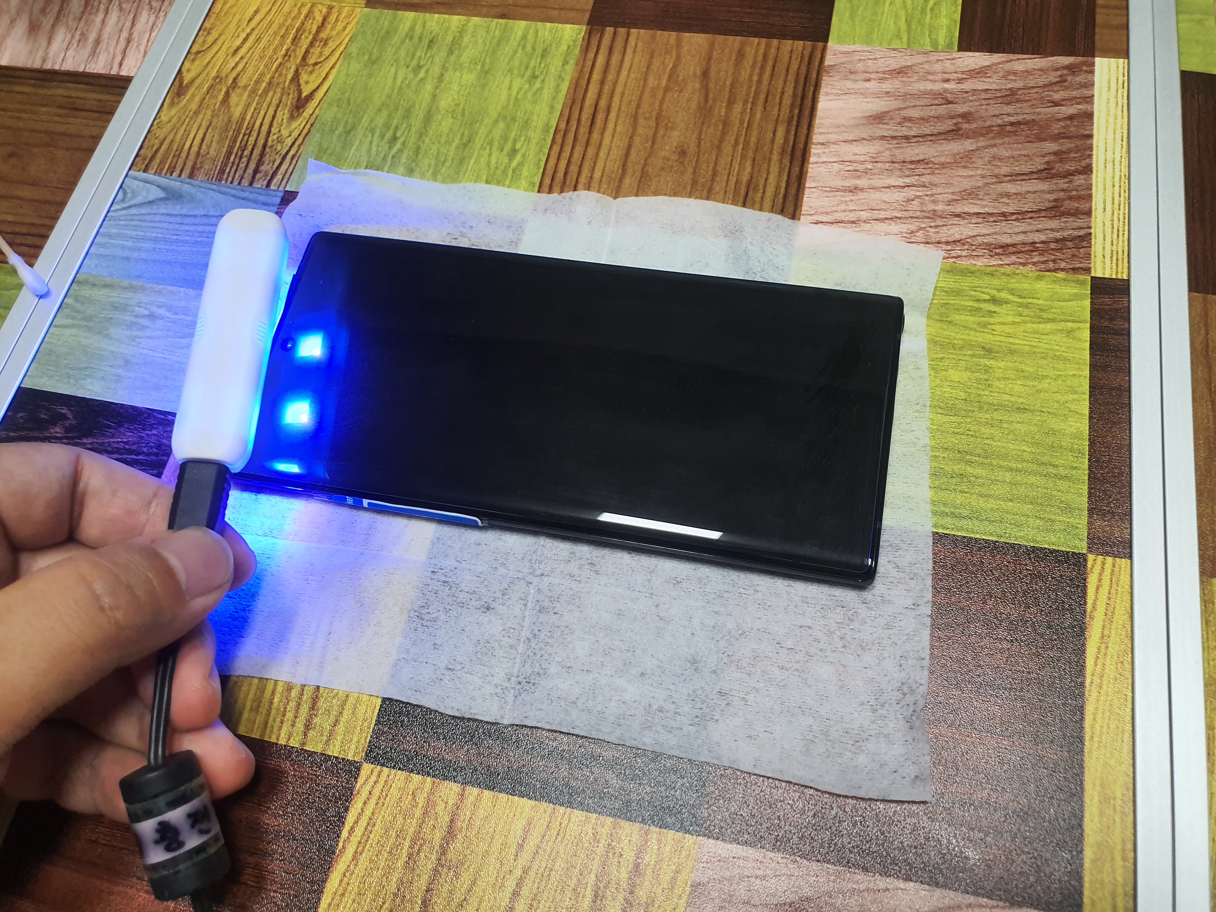 12. UV LED 경화기를 사용하여 휴대폰 테두리부터 중앙 쪽으로 경화시키기 (약 5분 정도)
