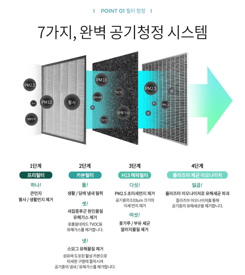 7가지 완벽 공기청정 시스템을 자랑합니다.