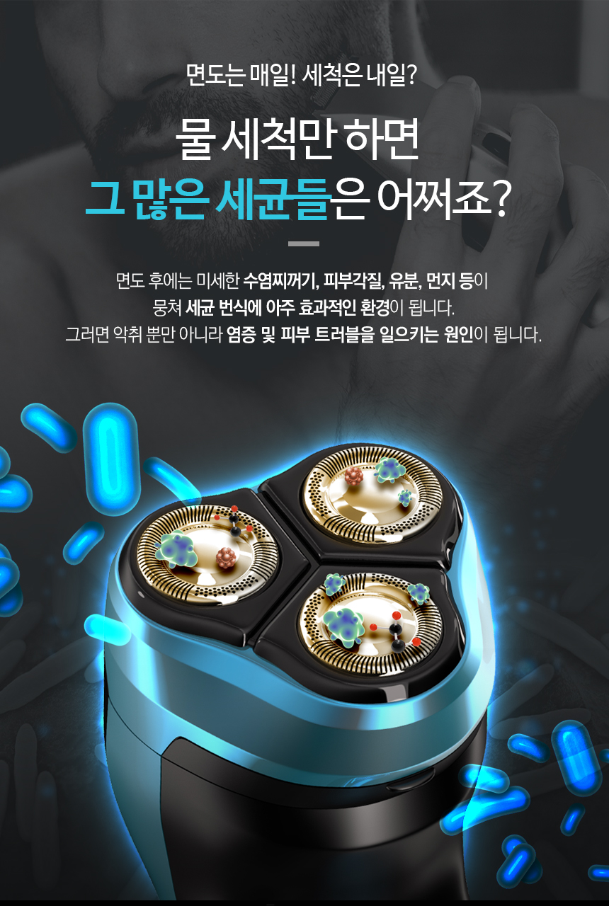 전기면도기도 세척합니다.