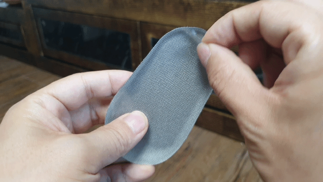 점선 라인이 보이는쪽이 두꺼운 부분이고, 저처럼 ㅇ다리라면 바깥쪽으로 사용하면 되네요!