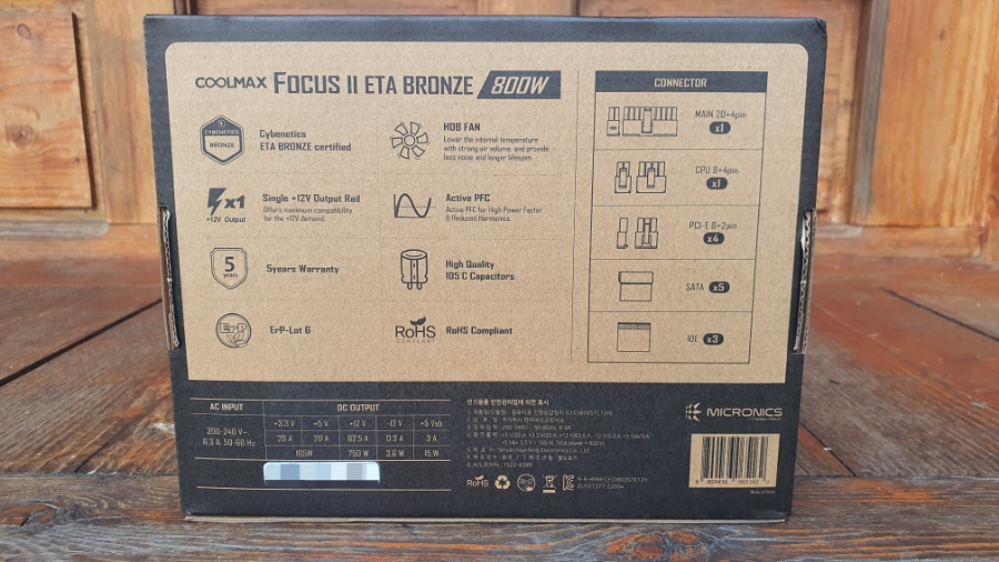 마이크로닉스 COOLMAX FOCUS II 800W ETA BRONZE 파워서플라이