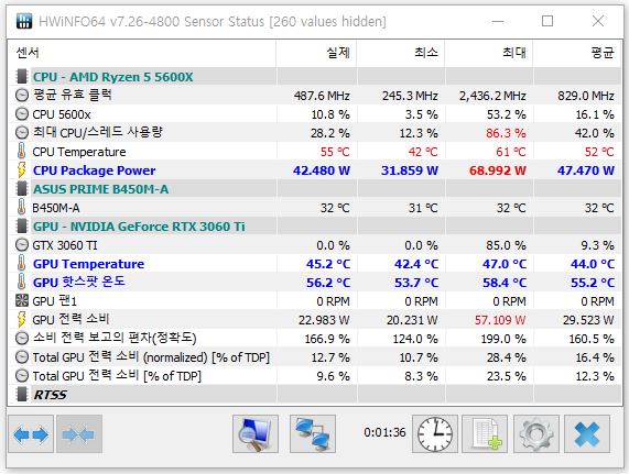 평균 온도를 낮추려면 아무래도 요즘 유행하는 2열 수랭쿨러로 업그레이드를 해줘야 한다는 것을 피부로 느끼고 있네요. ^^