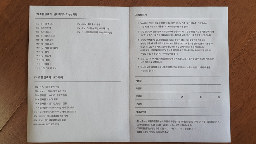 크게 부담되지 않는 가격으로 방수가 되면서 2중 사출 키 캡과 적절한 LED라서 보기도 좋고 꼭 필요한 FN 펑션 기능까지 모두 마음에 들고 마지막으로 내구성까지 좋은 키보드!!