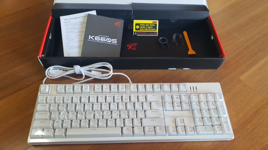 키보드에 먼지가 쌓이는 것을 방지하는 플라스틱 키보드 커버가 있어서 개인적으로는 마음에 드네요. ㅎㅎ