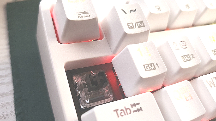 무접점 방식의 스위치면서 기계식 키보드처럼 딸깍 소리가 나는 특징을 가지고 있습니다.