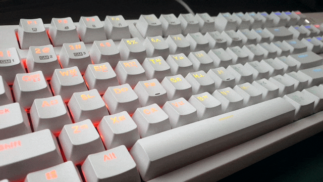 오랜 시간 사용해도 지워지지 않는 이중 사출 키 캡을 사용했고, 조명효과도 잘 비춰지고 폰트도 무난한 키캡입니다.