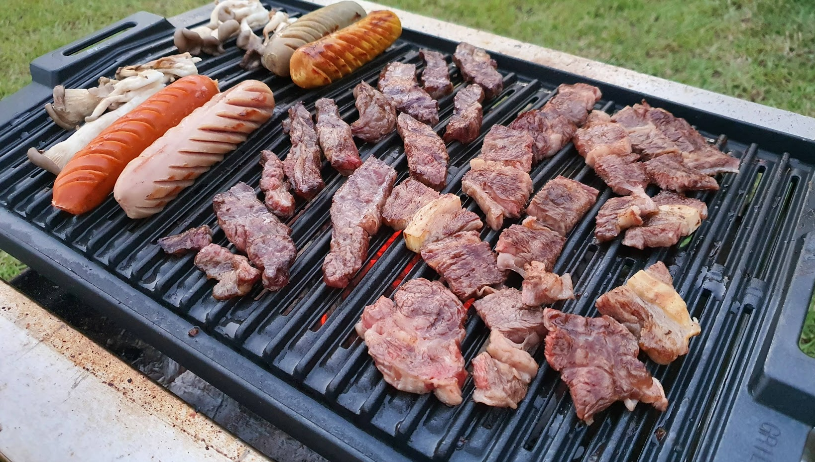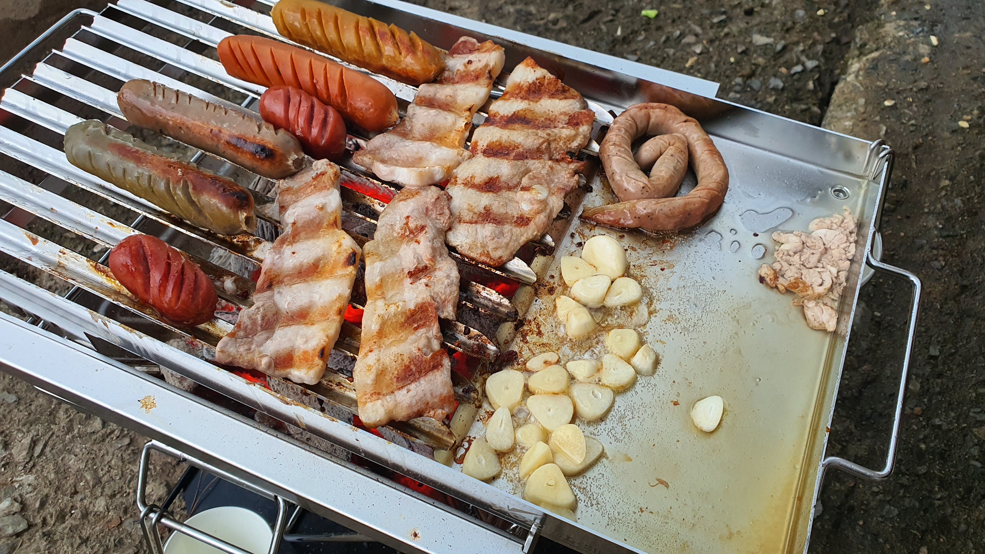 홈이 있어서 기름이 숯으로 떨어지지 않는 방식으로 삼겹살, 목살 등등 바베큐 파티가 아주 쉬워졌습니다. 나름 만족스러웠어요!