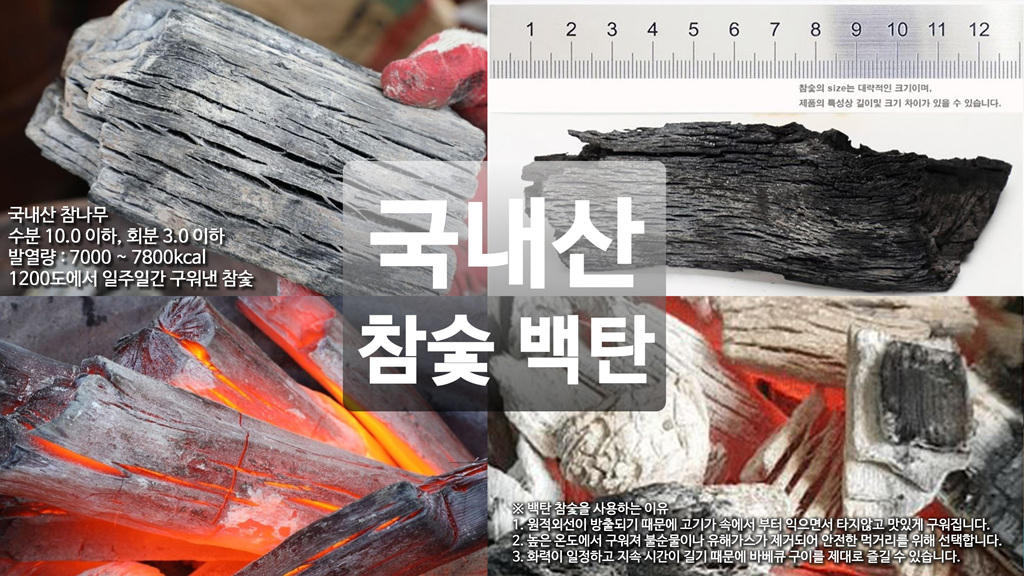 제가 사용하는 국내산 참숯 백탄인데요... 이놈도 숯이 좋아서 고기 맛이 더 살아나고 좋더라구요!!