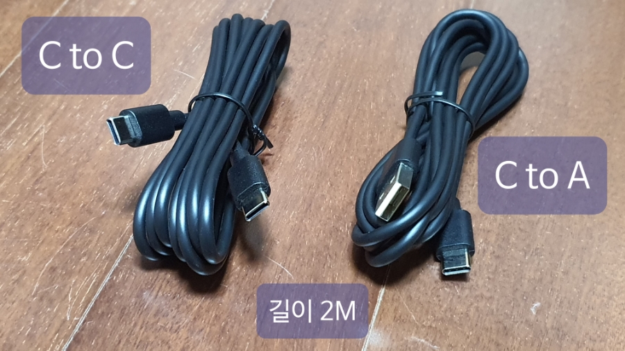 C to C USB 케이블, C to A USB 케이블의 길이는 2미터로 컴퓨터 본체와 연결하고 책상 위에 놓기 편리하도록 아주 적당한 길이입니다.