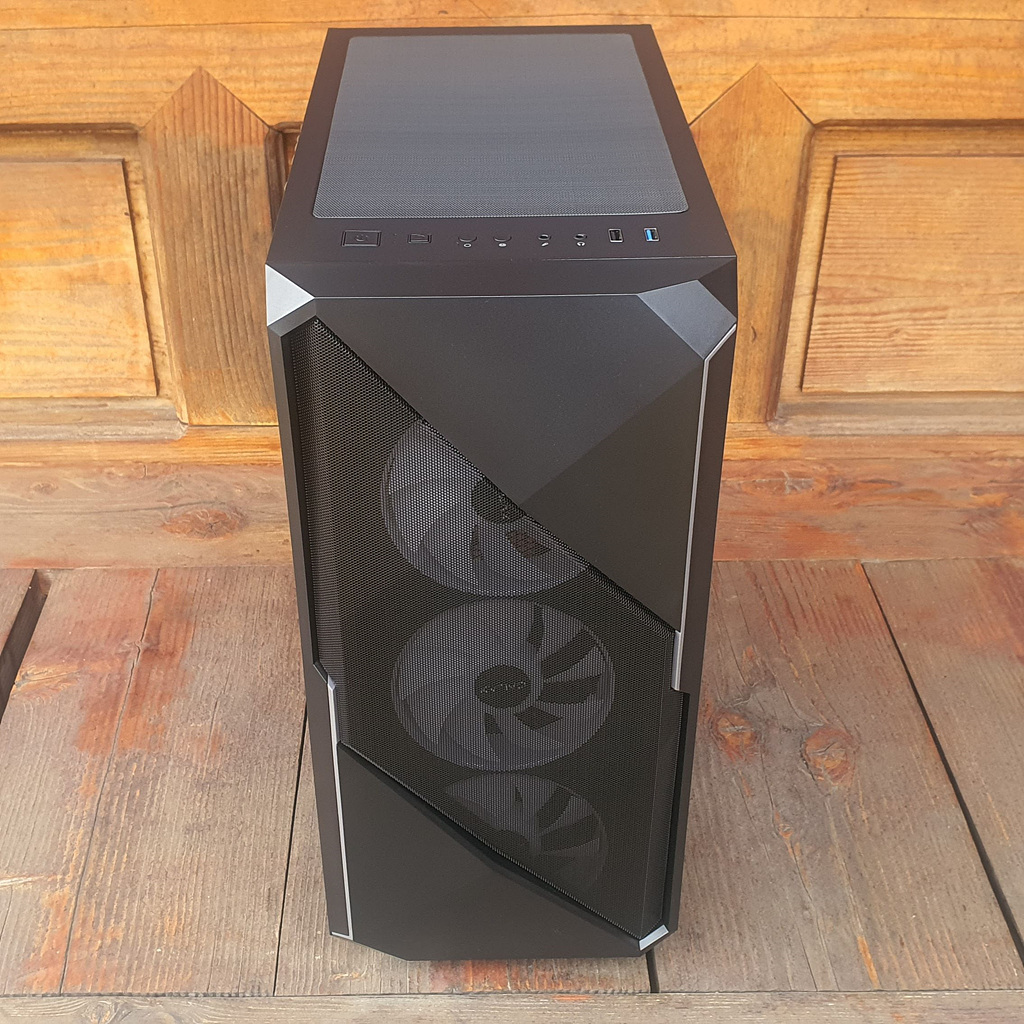 전면에는 120mm 팬 3개와 후면에 120mm 팬 한 개로 기본 쿨링을 제공합니다.