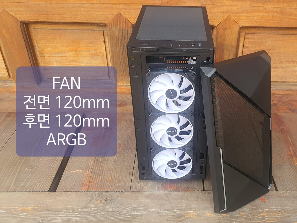 최신 트렌드를 반영해 '120mm GALAX REVOLT-01 Addressable RGB' 기본 팬 4개와 팬 허브를 기본으로 제공하기에 튜닝 효과가 좋습니다.