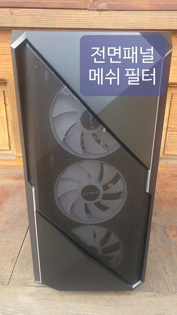상단은 마그넷 자석 타입의 먼지 필터가 있고, 하단 파워 장착 부스에는 필름형 걸쇠 방식 매시 필터 타입으로 탈부착이 가능합니다.