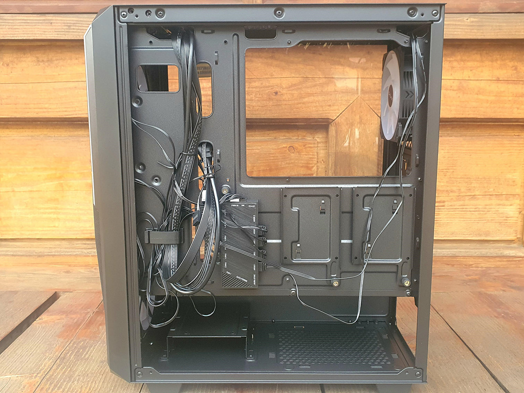 케이스 상단에는 240mm 수랭 쿨러를 장착하고, 파워 커버 상단에 120mm 팬 2개를 장착하면 딱 사용하기 좋은 최고의 쿨링 상태가 될 거 같네요!