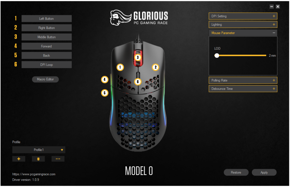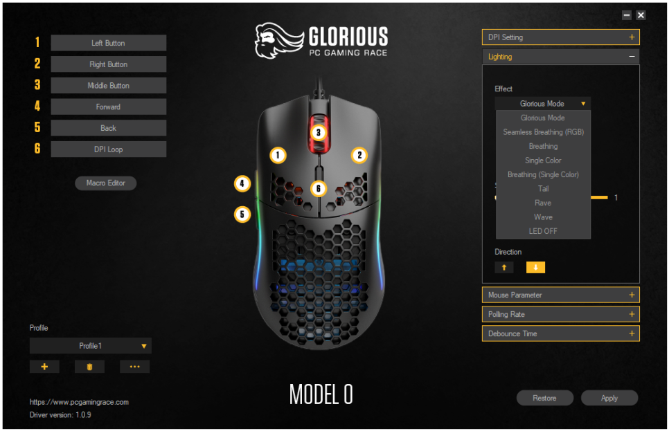 Glorious Model O Software 소프트웨어를 설치하시면 아래와 같은 화면을 보실 수 있는데요.