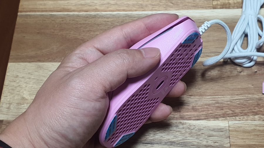 게이밍 마우스가 평균적인 크기보다 살짝 작은 느낌으로 평범한 사람들이 사용하기에도 적합하나 저처럼 약간 손이 작은 사람들에게도 좋은 그립감을 제공합니다.