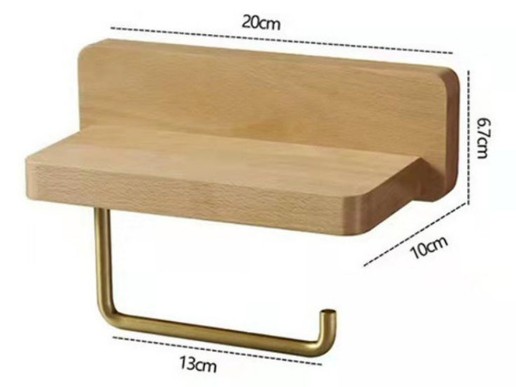 라이트 우드색상의 선반형태의 휴지걸이 입니다. 휴지 걸이 봉도 나무 색상이네요!