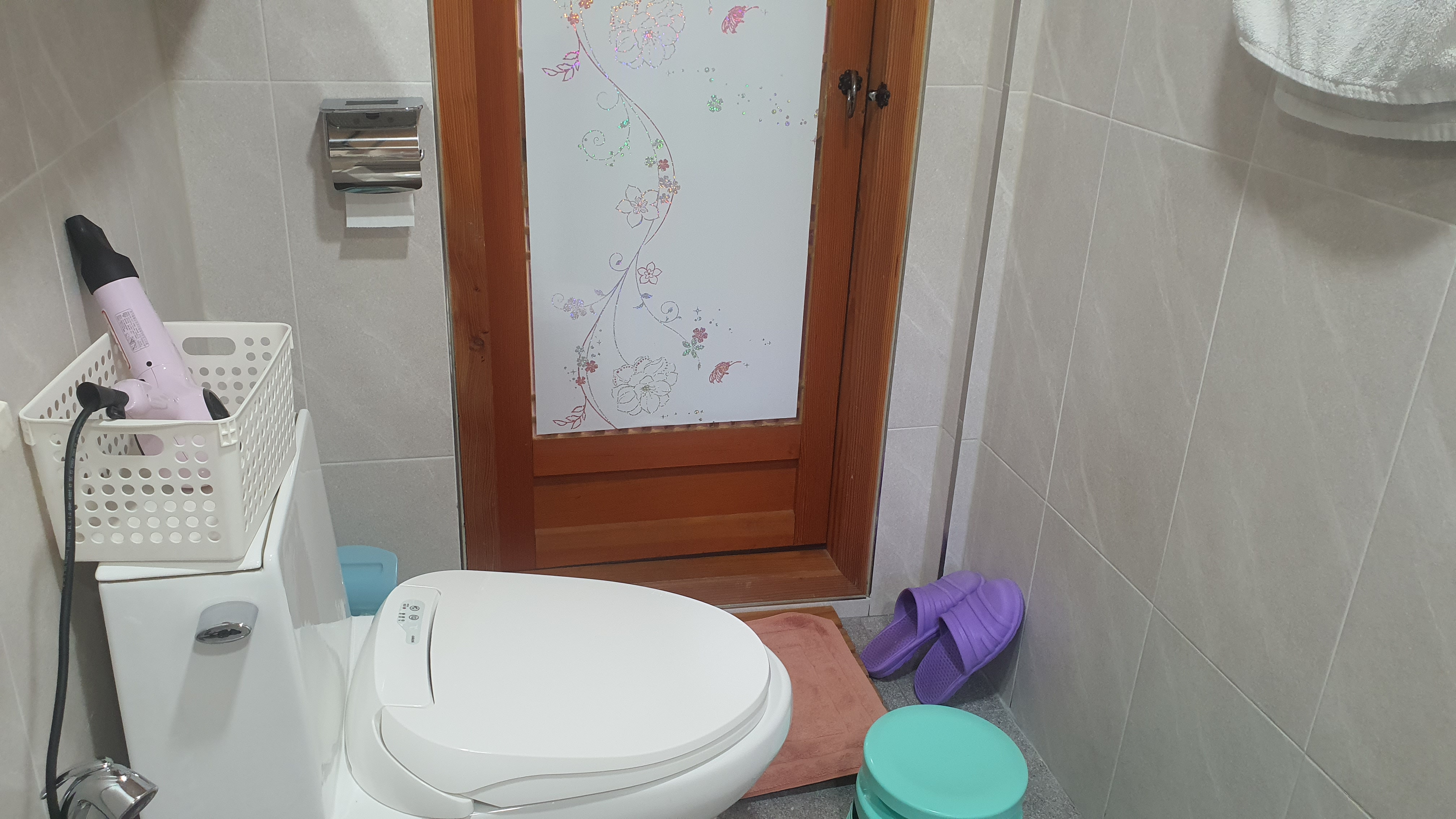 화장실에 휴지걸이가 있지만 각도가 마음에 들지 않습니다. 사용하기도 불편하구요!