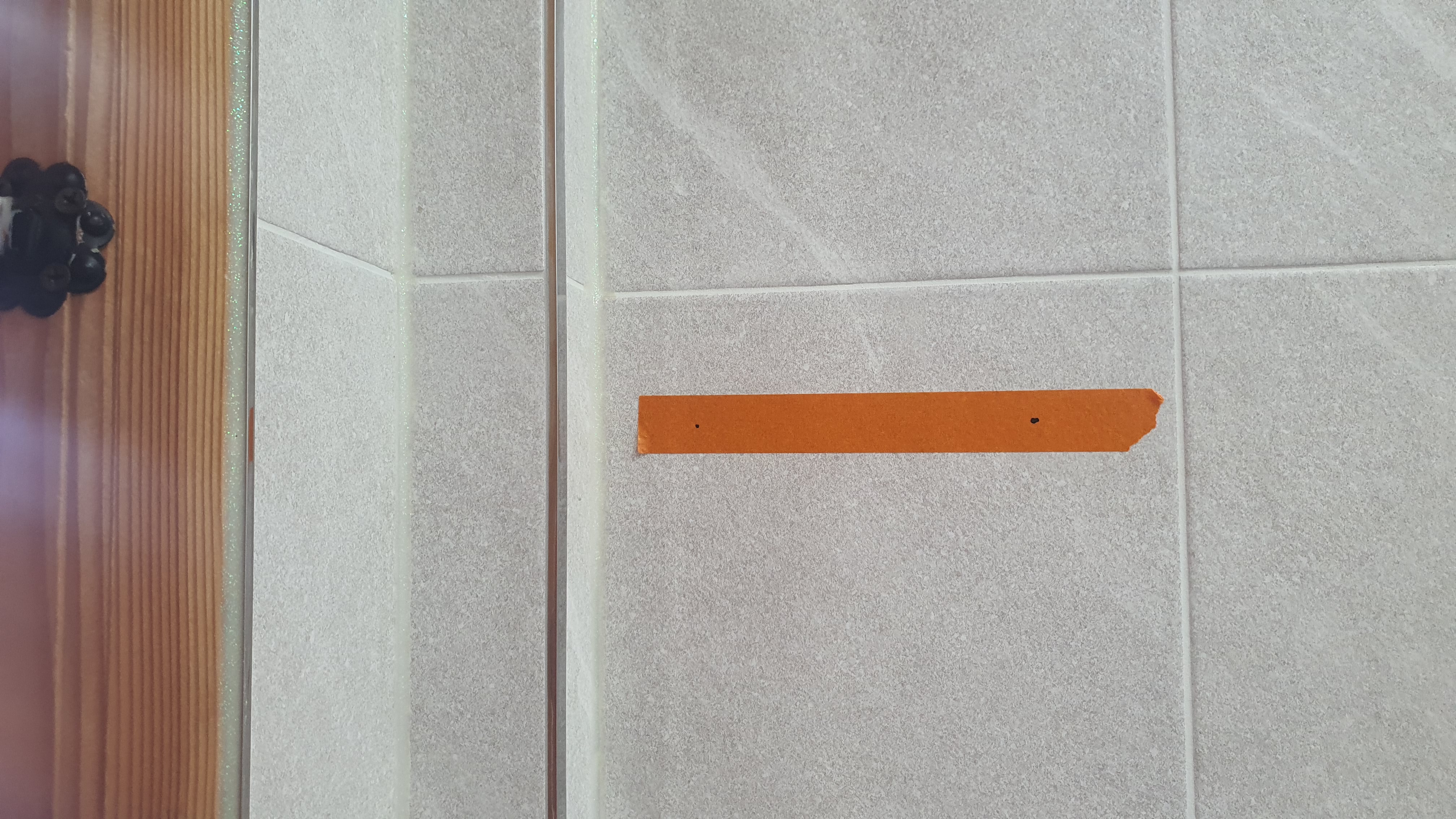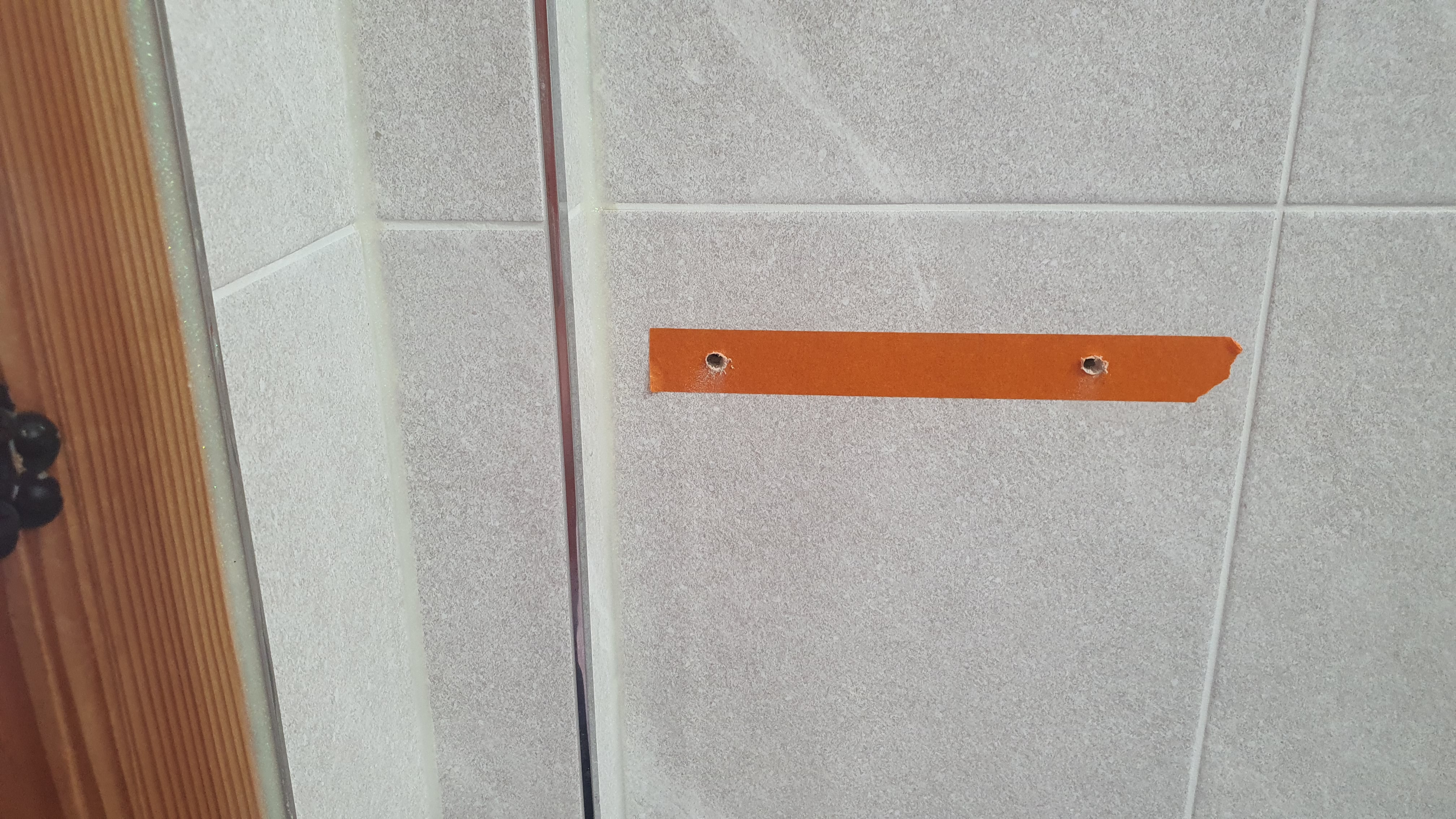 타일은 미끄럽기 때문에 마스킹 테이프를 작업해두면 전동드릴로 작업을 할때 비트가 밀리지 않아서 좋아요!