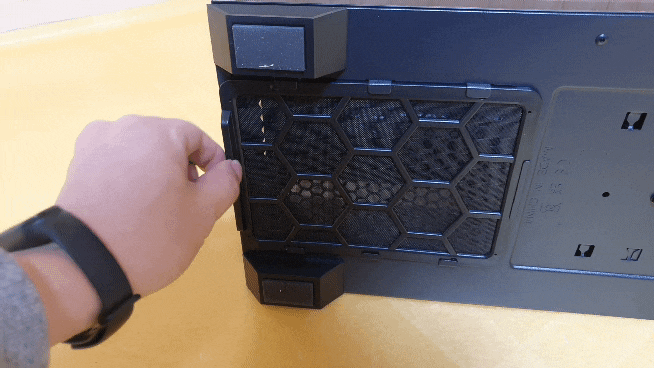 전에 리뷰했던 잘만 N5 MF 제품도 전면 메쉬망이 버튼식 착탈식이라서 청소하기도 너무 좋았는데 먼지필터가 내부에 마그네틱 자석 타입으로 부착되어 있었는데, 이번엔 먼지 필터 망만 슬라이드로 외부에서 바로 빼서 청소할 수 있는 부분이라서 너무 마음에 드네요. ^^
