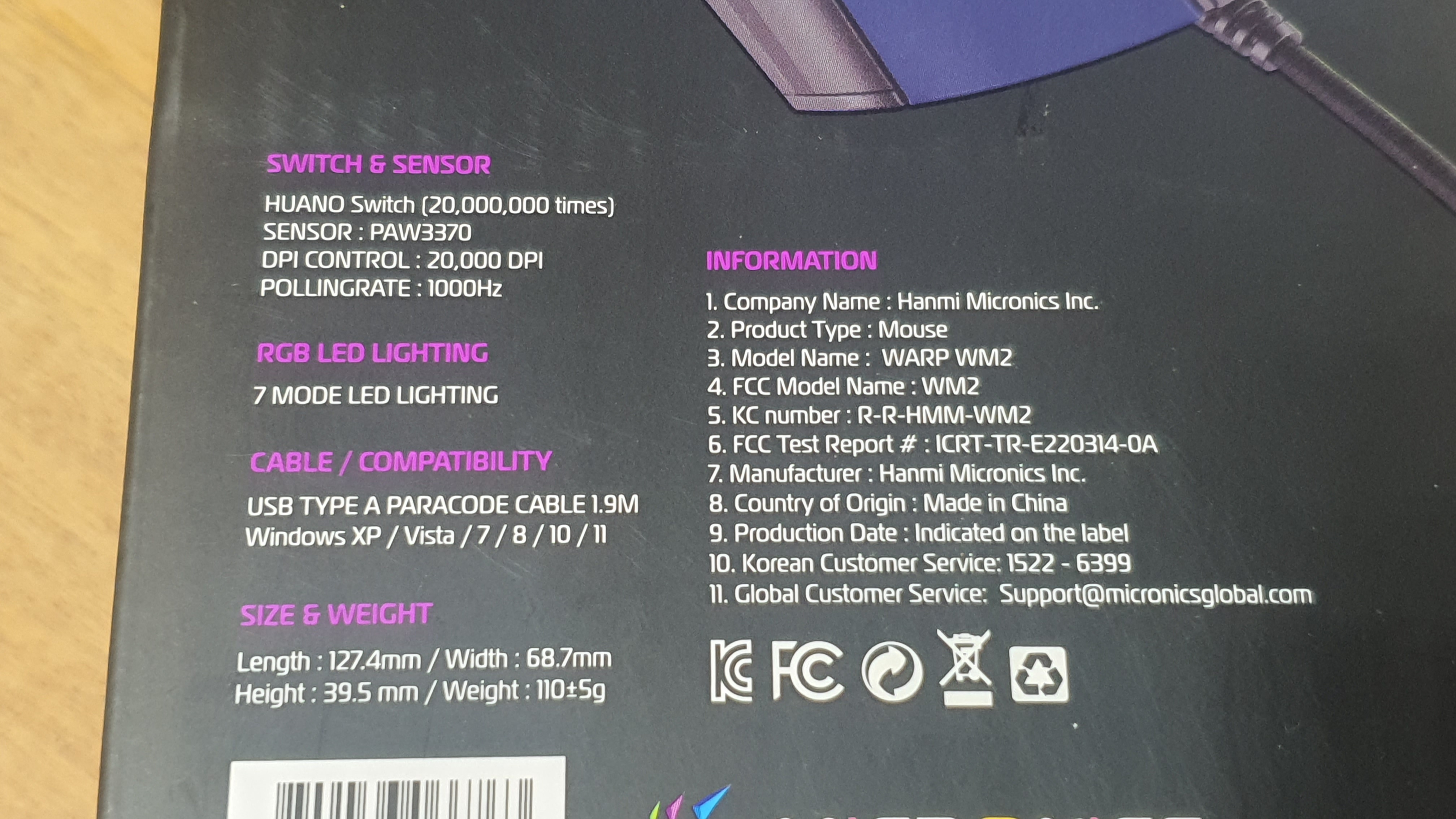 A/S 보증기간도 2년이고 소프트웨어 제공과 각종 하드웨어가 잘 갖춰진 게이밍 RGB 유선 마우스 마이크로닉스 WARP WM2 마우스는 저처럼 프로게이머는 아니더라도 평범한 게이머들에게는 가성비 좋은 마우스라 고 생각됩니다.