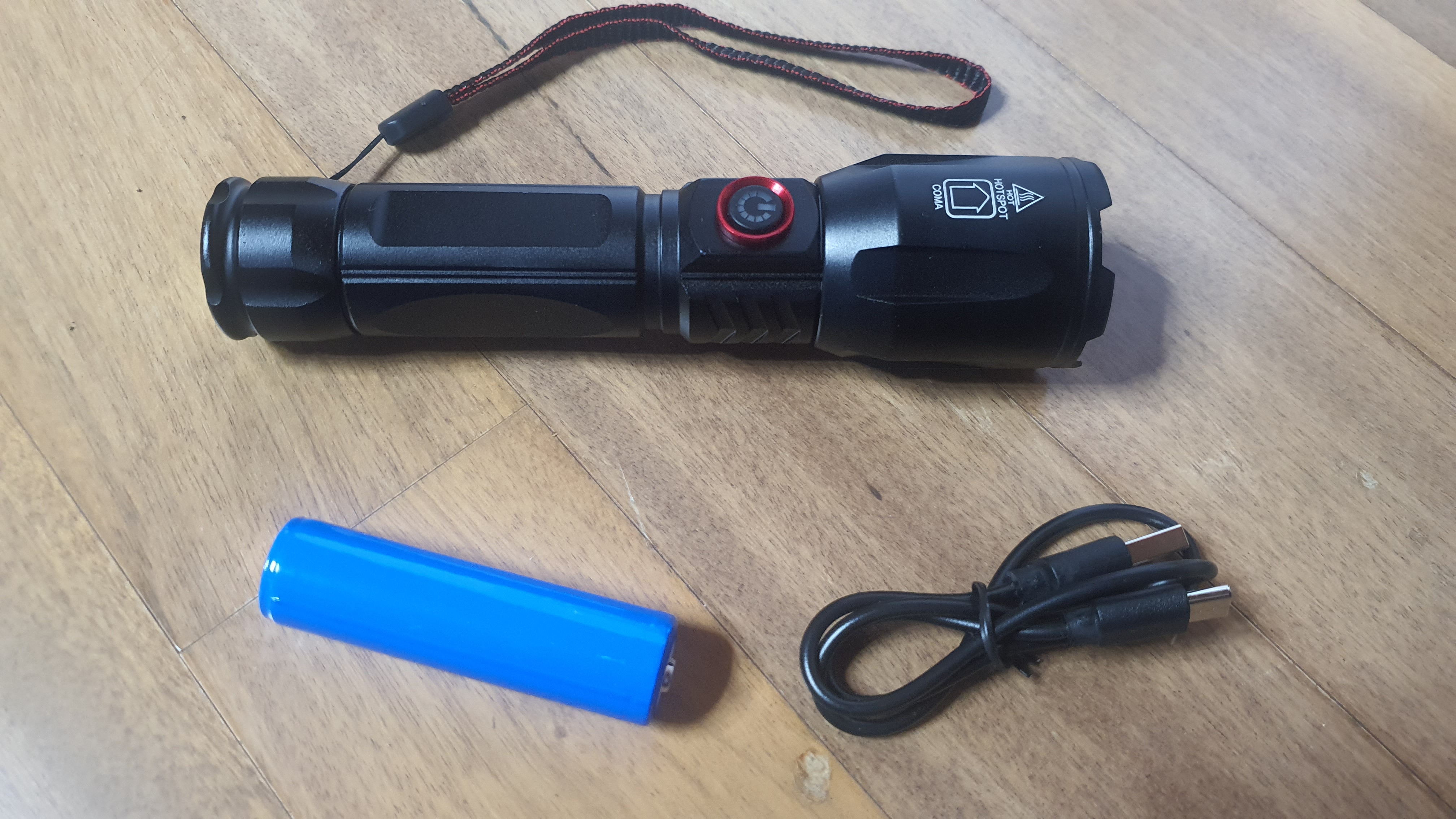 휴대용 LED 손전등 본체, 18650 충전식 베터리, C타입 USB 케이블