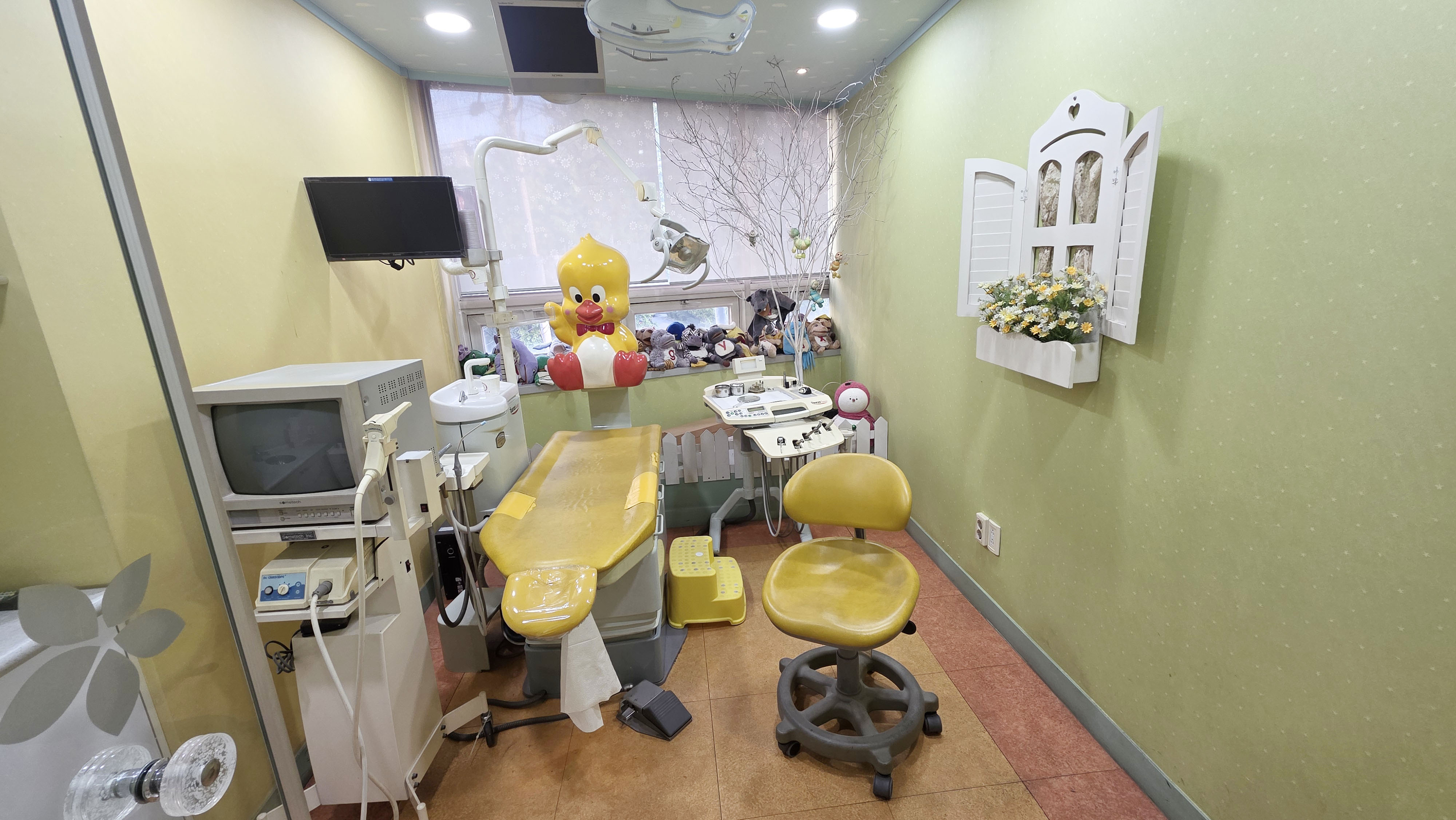 치과는 깔끔하고, 환자가 양치하고 손도 씻을 수 있는 공간도 있고, 어린아이들을 위한 진료실과 귀염귀염 반지 들도 있습니다.