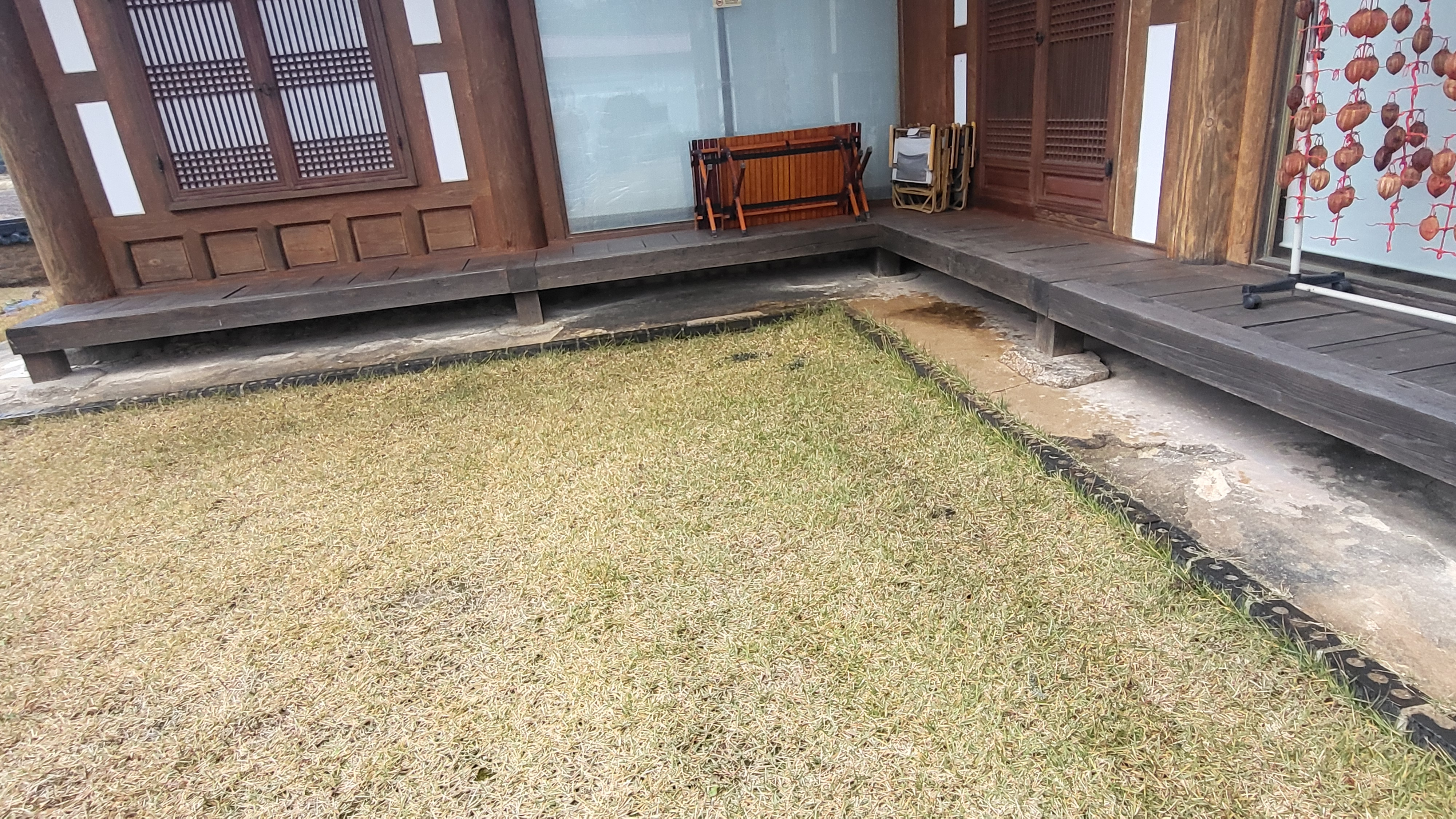 2. 한옥 통유리 앞 작은 잔디마당 잔디제거 후 마감 (전문가 추천 희망)