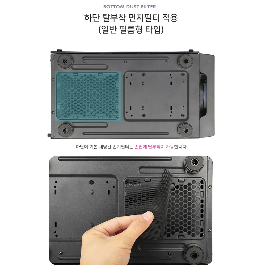 파워 서플라이 보호를 위해 탈부착 먼지 필터도 장착이 되어 있습니다.
