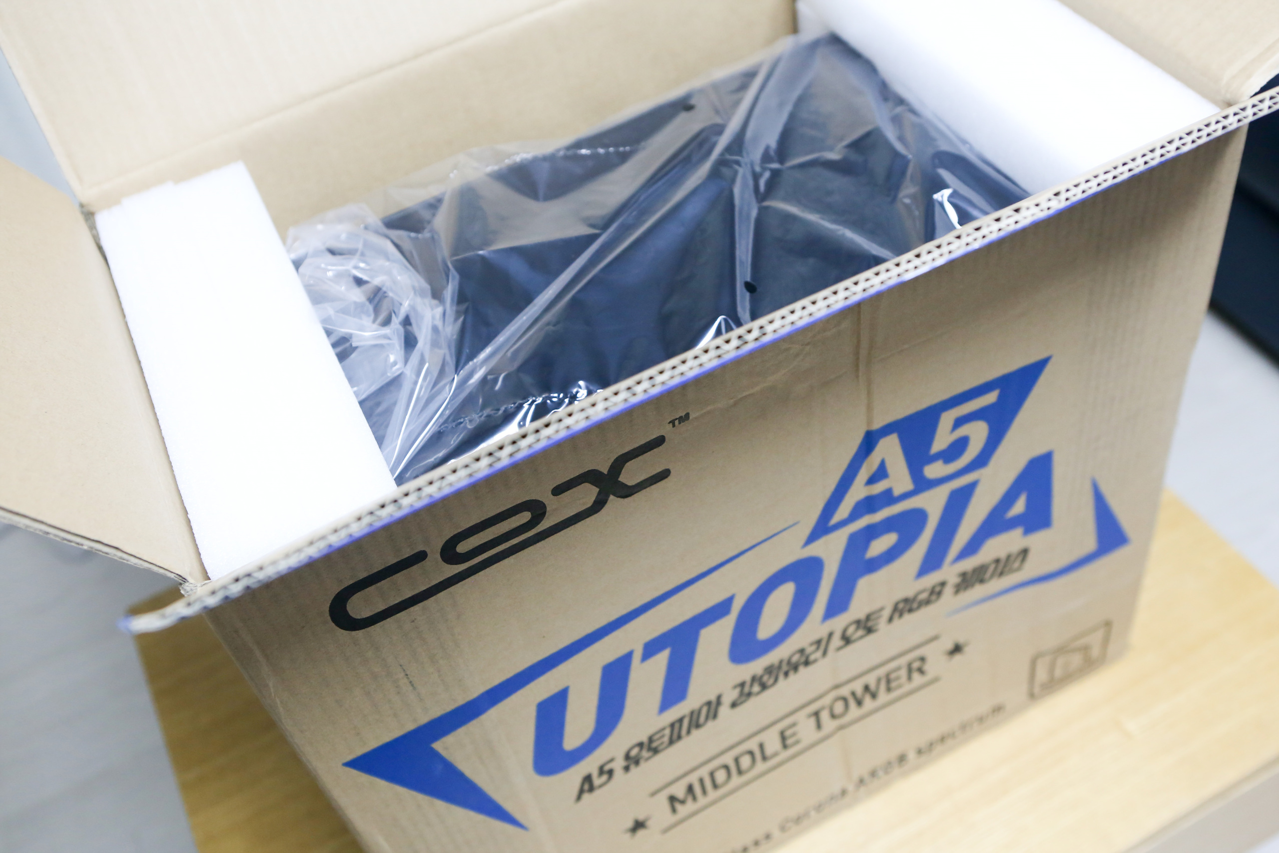 케이스가 충격을 받지 않도록 스티로폼이 아닌 더 안전한 PE 발포폼으로 잘 고정하여 보호하고 있습니다.