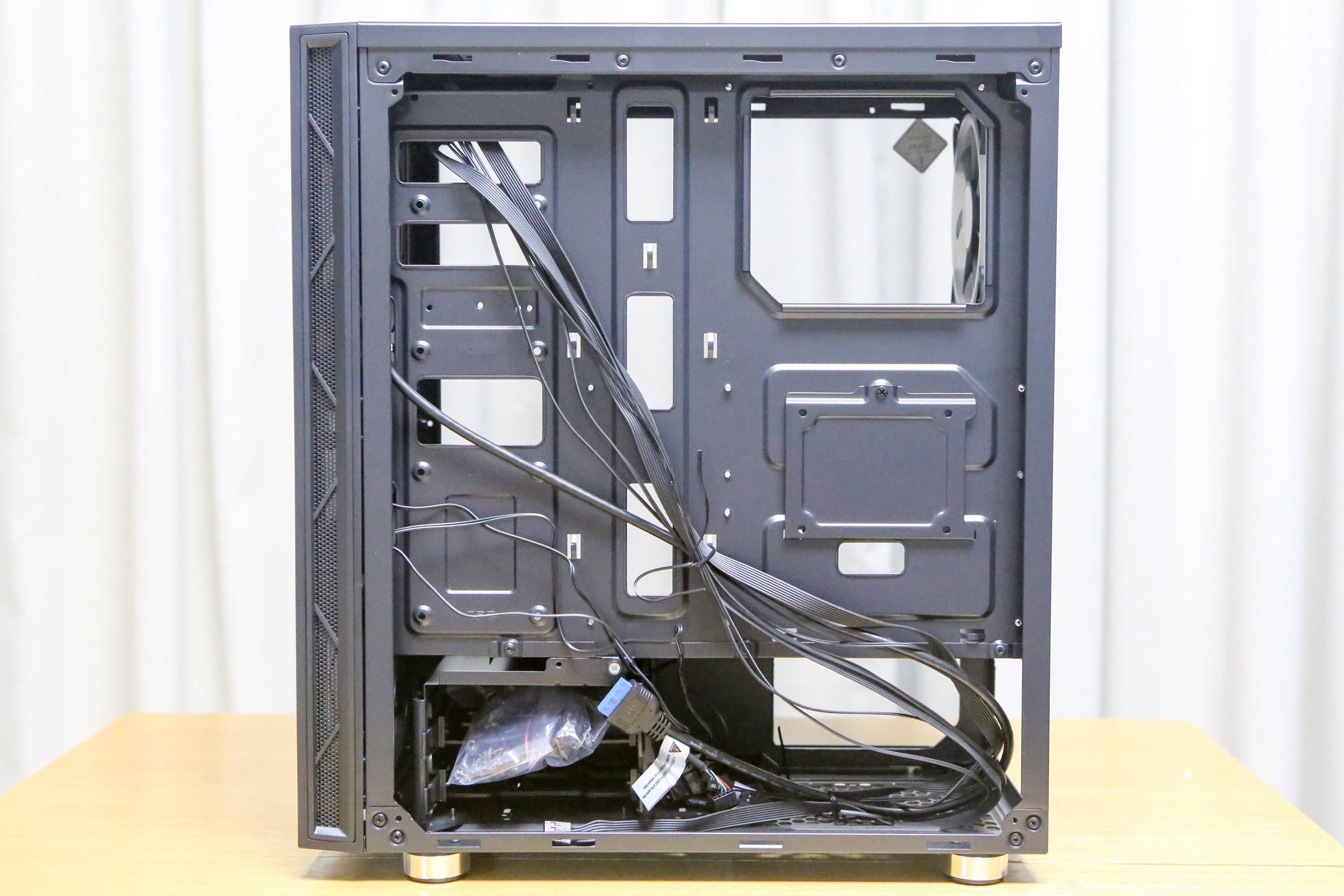 우측 상단 패널은 CPU 전원 케이블을 위한 홀이며, 나머지는 좌측 패널을 이용하면 조립이 수월합니다.