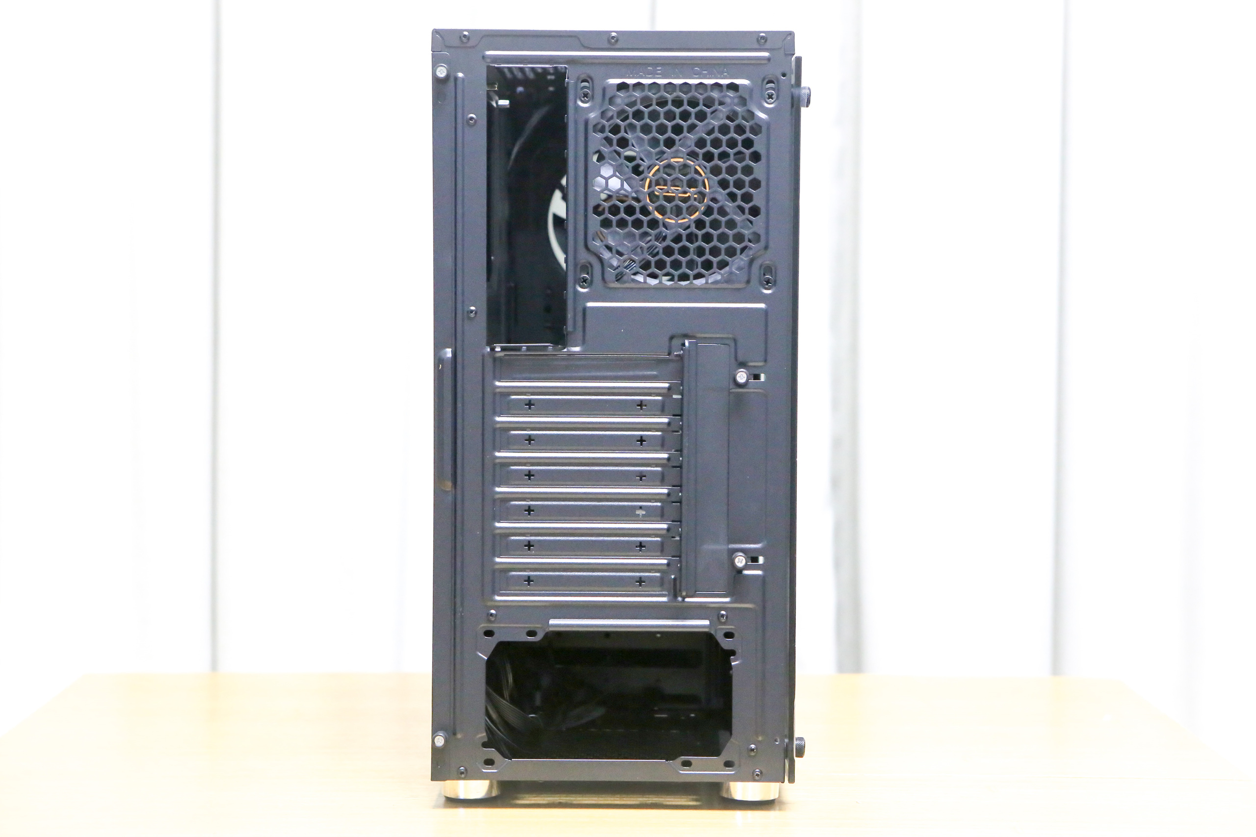 120mm 후면에 LED 팬 1개가 기본으로 장착되어 있으며, 보드 백패널 장착부, PCI 슬롯은 총 7개까지 제공합니다.