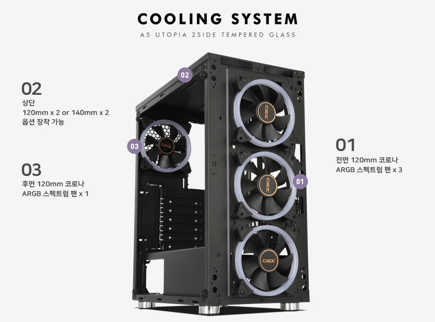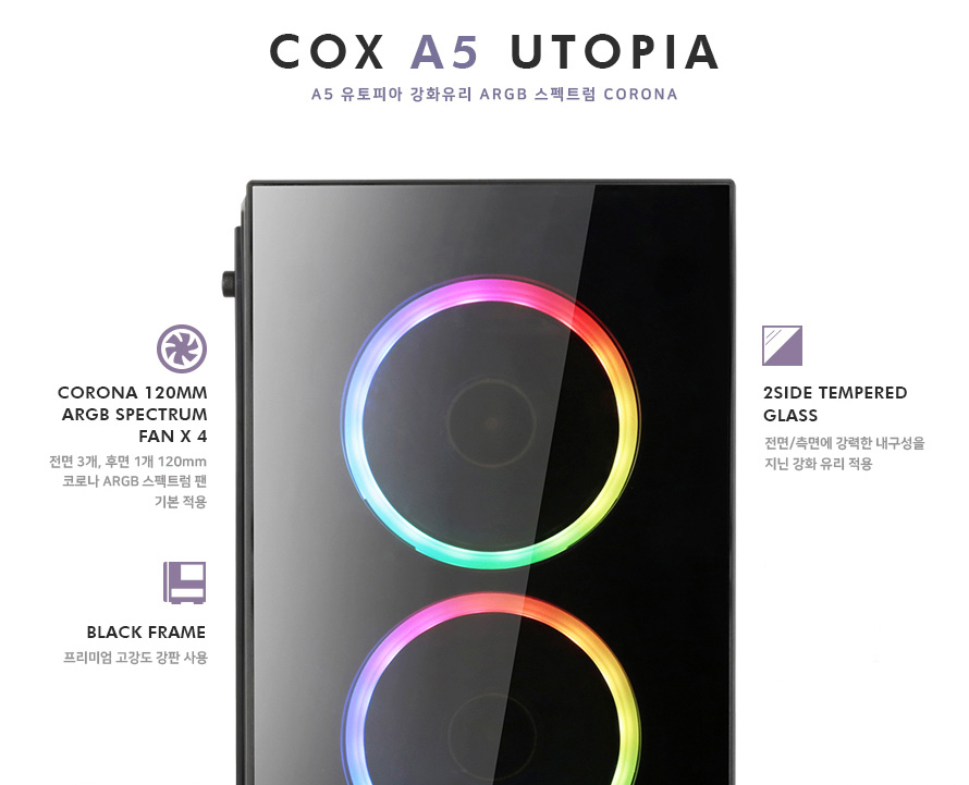 COX A5 유토피아 강화유리 스펙트럼 CORONA 컴퓨터 케이스 설명