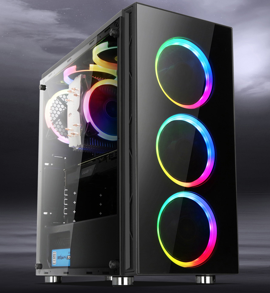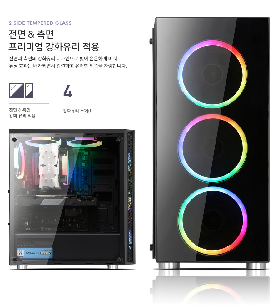 좌측 강화유리를 통해 내부가 확인되어 ARGB SPECTRUM LED 팬 및 RGB 튜닝 등을 통해 PC를 꾸밀 수 있는 장점도 있습니다.