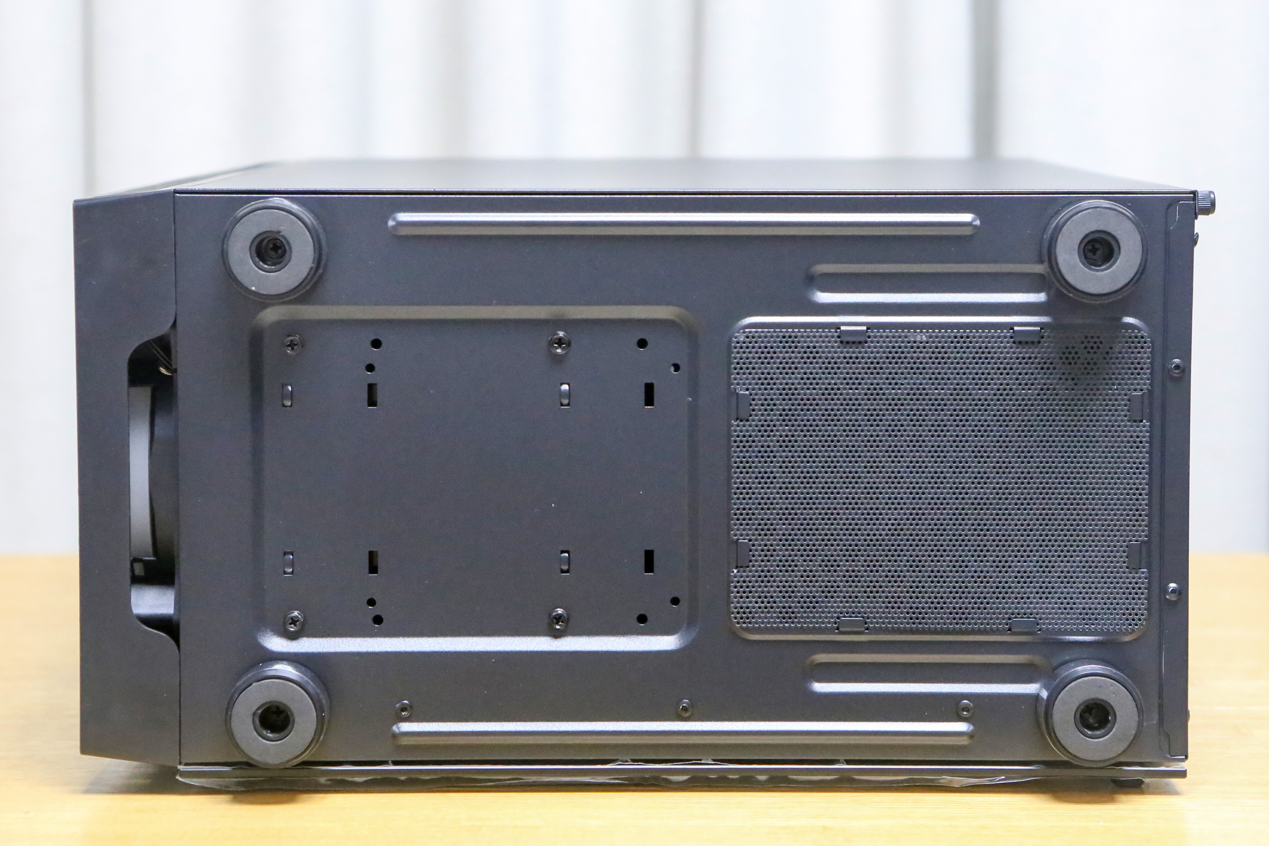 본체 지지대에는 미끄럼 방지 고무 패드가 아닌 고급스러운 고정발이 장착되어 있습니다. 기본적으로 하단에 파워 서플라이를 장착할 수 있는 공간을 제공합니다.