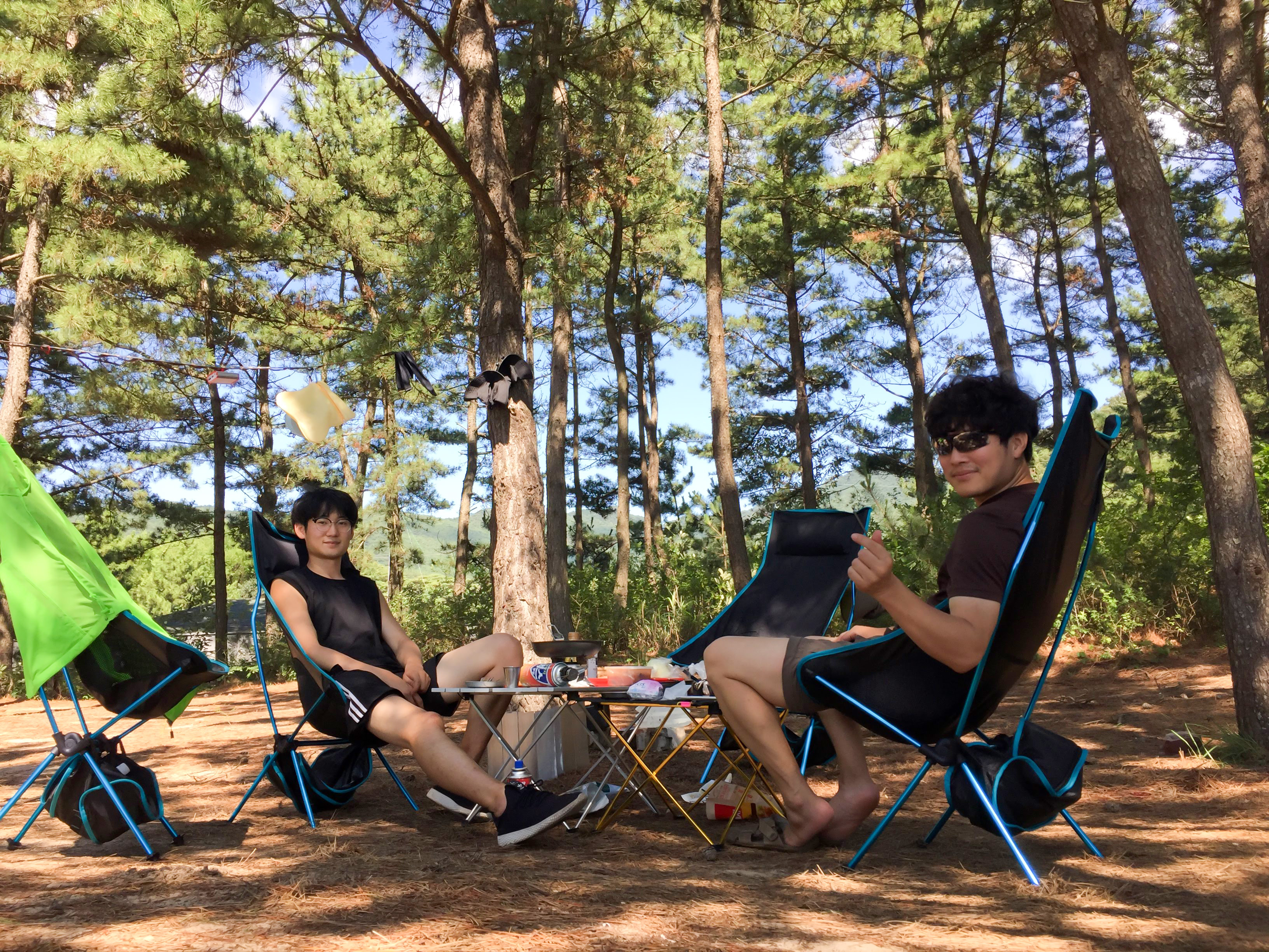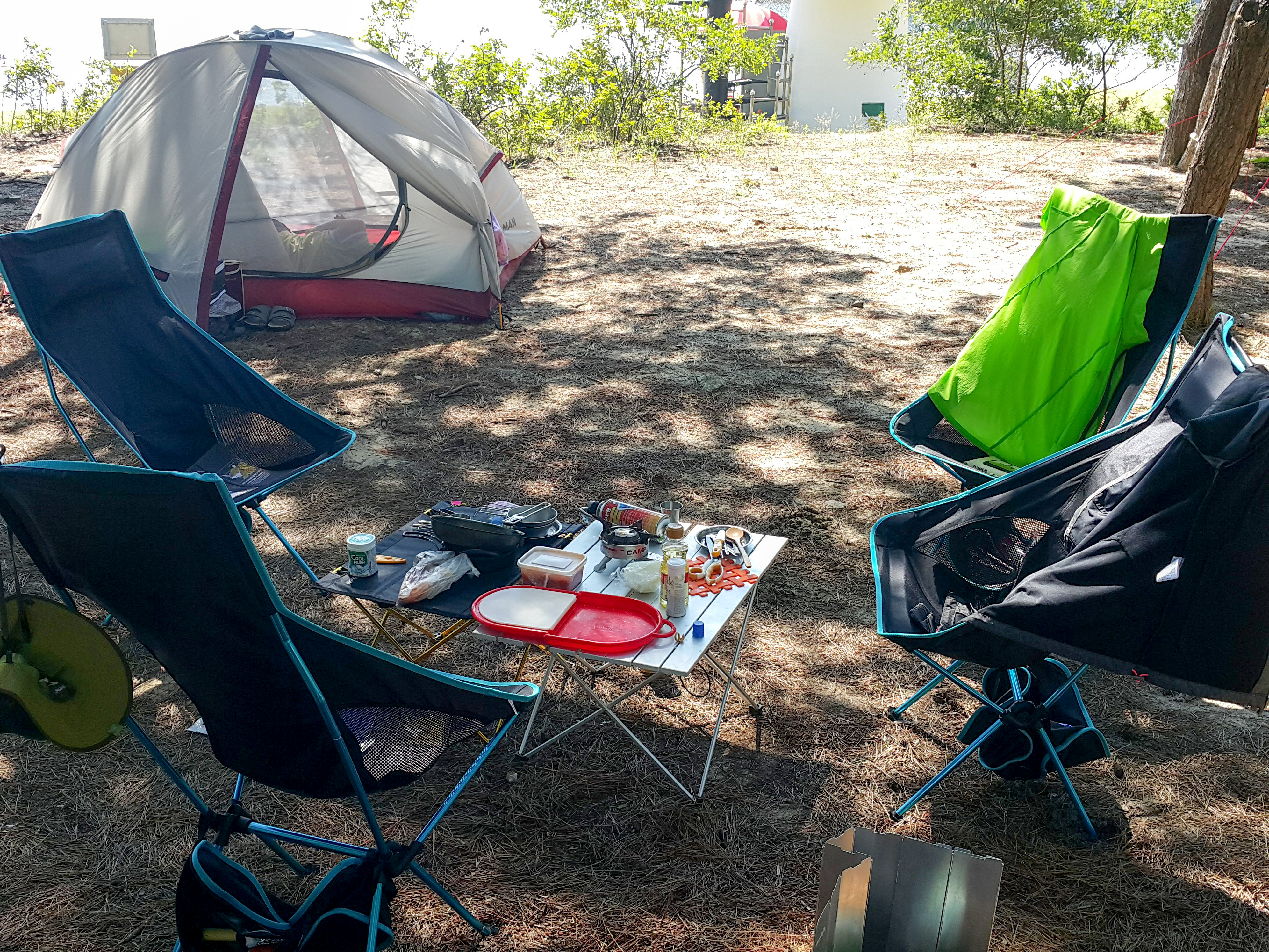자리 잡고 텐트 치고 장비 세팅하다 보니 시간이 벌써 점심시간입니다.
