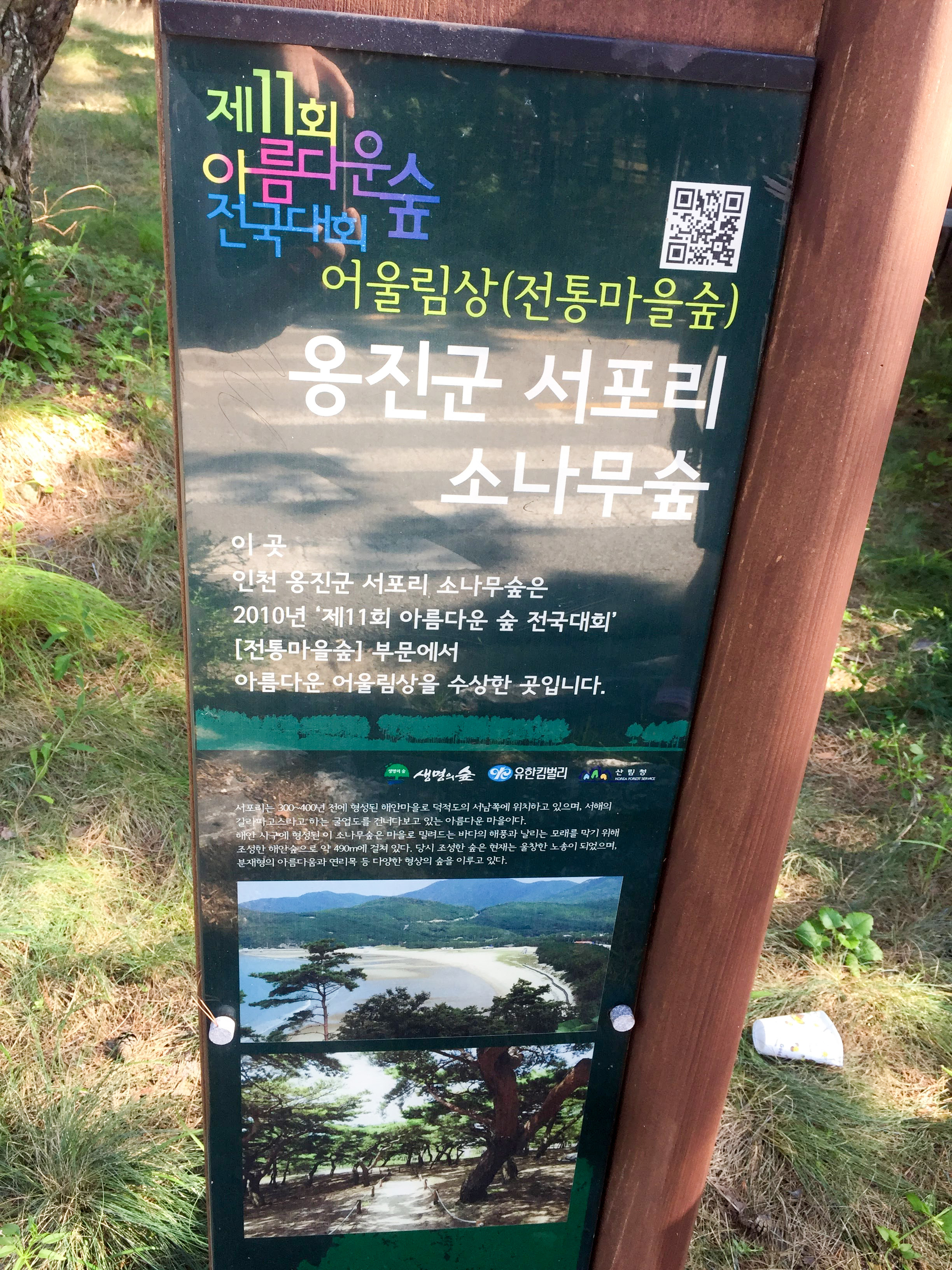 인천 옹진군 서포리 소나무 숲은 2010년 '제11회 아름다운 숲 전국대회' [전통마을숲] 부분에서 아름다운 어울림상을 수상한 곳이라고 합니다.