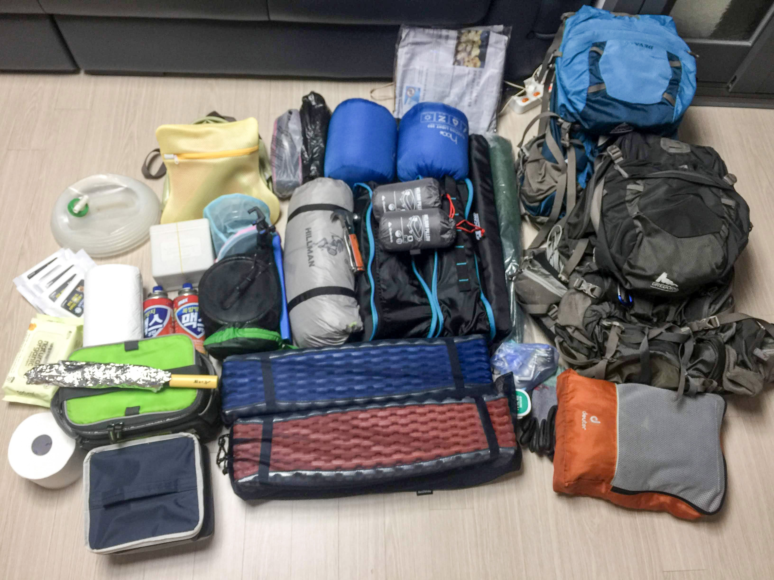 정말 초보 백패커를 위해 준비해 간 장비들을 적어보겠습니다.
