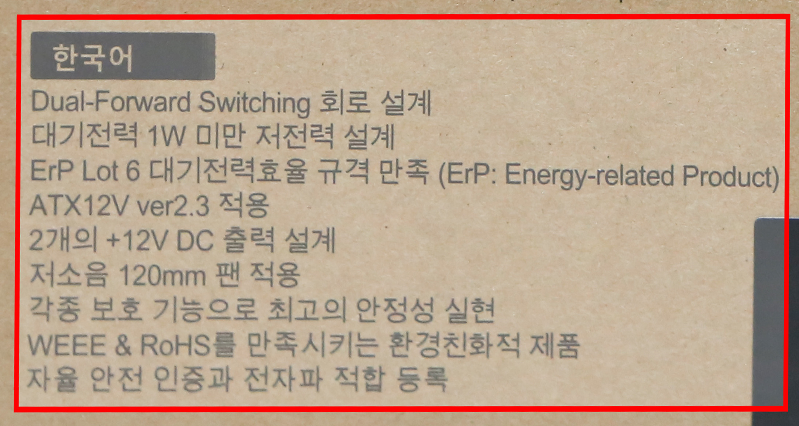 Dual Rail +12VDC Output - +12VDC 듀얼 레일 설계로 최신 CPU 및 그래픽 카드에 정확하고 안정적인 전원을 공급해주며 각종 오버클럭과 고사양 PC 환경 조성을 지원