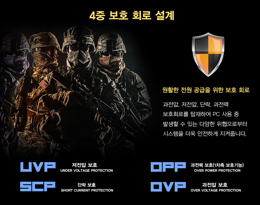 그렇기 때문에 원활한 전원 공급을 위해 [4중 보호 회로 설계] 로 PC 사용 중 발생할 수 있는 다양한 위협으로부터 시스템을 더욱 안전하게 지켜주는 게 중요합니다.