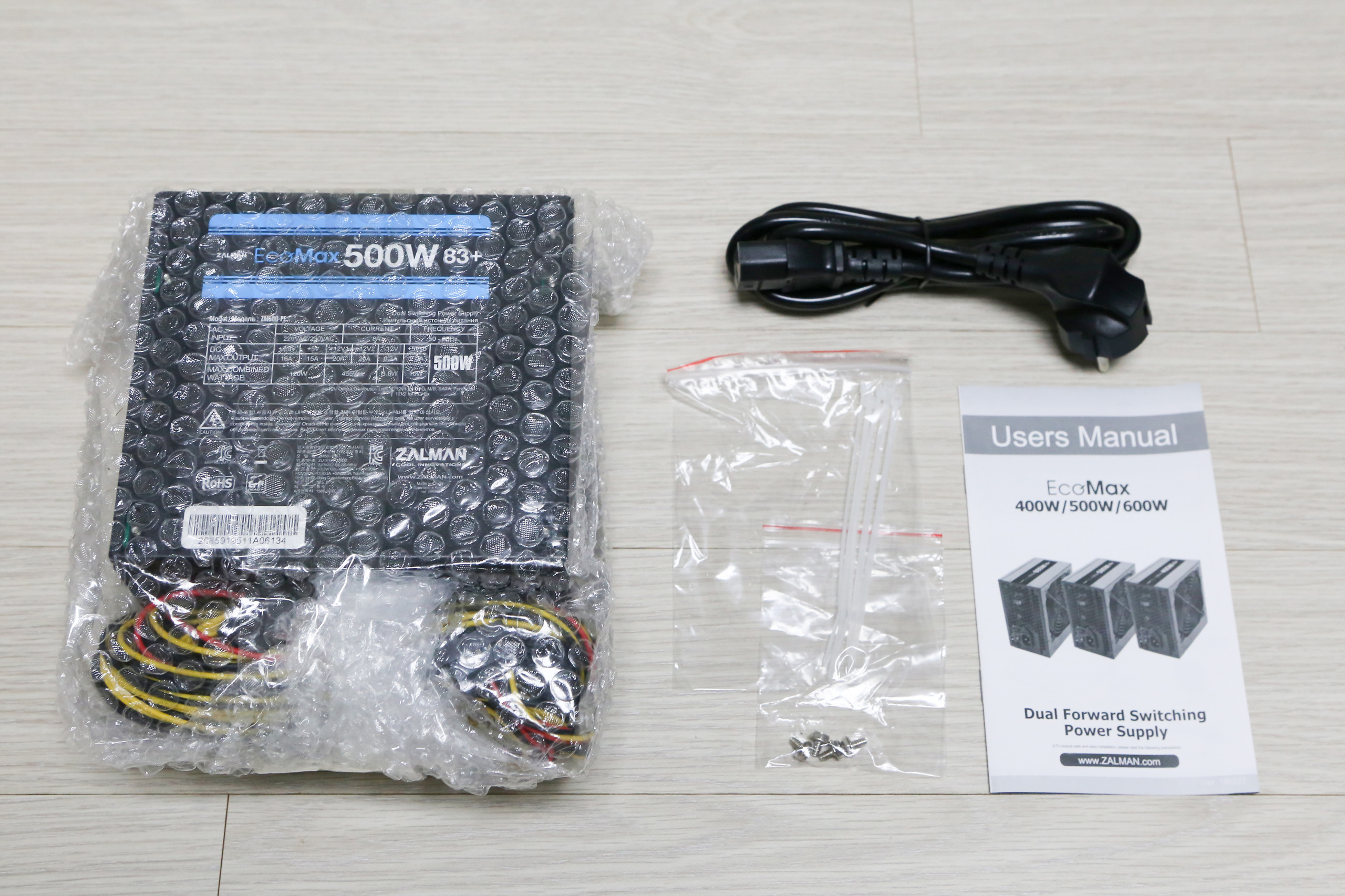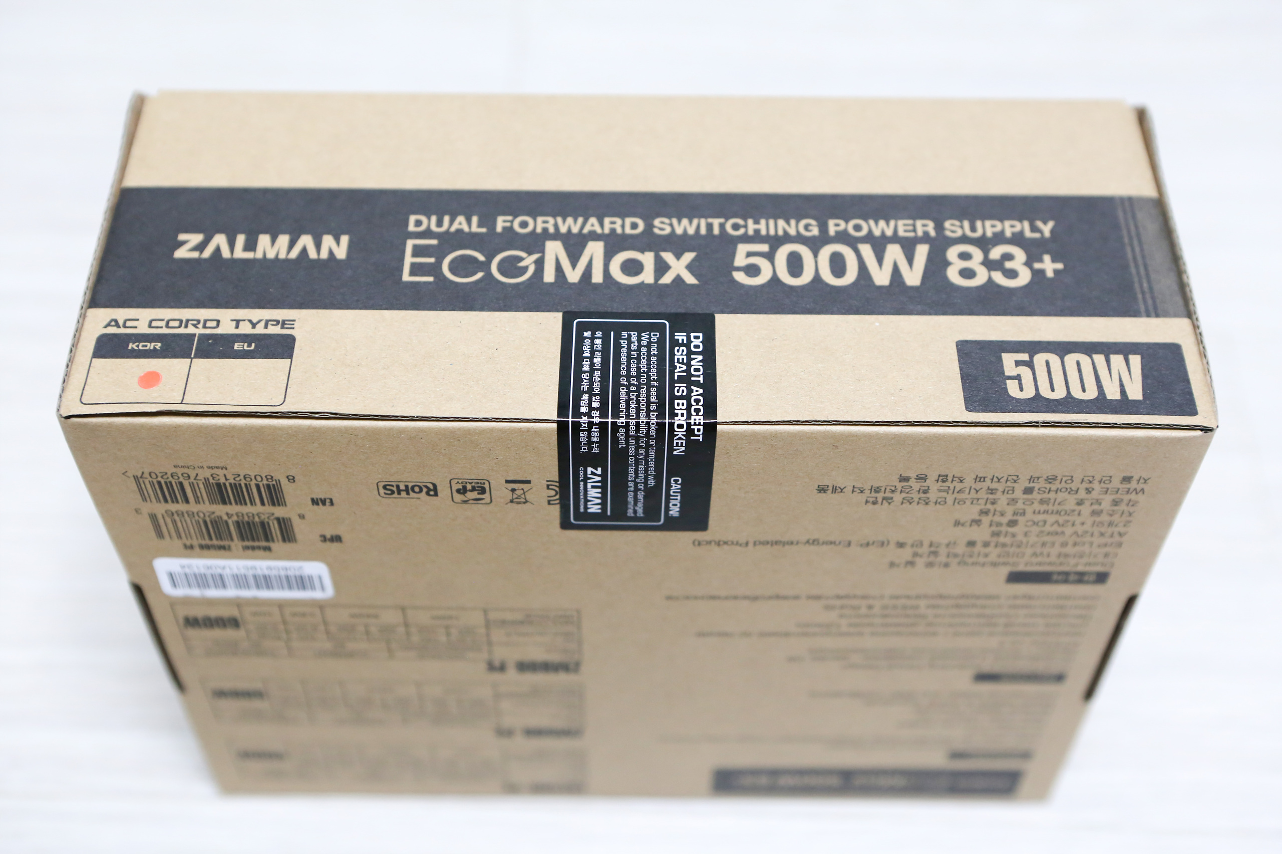 'EcoMax 500W 83+ 파워서플라이' 제품은 뾱뾱이 포장이 잘 되어서 안전하게 배송되었습니다.