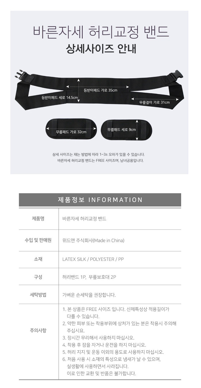 바른 자세 허리 교정 밴드 상세 사이즈 안내 및 제품 정보