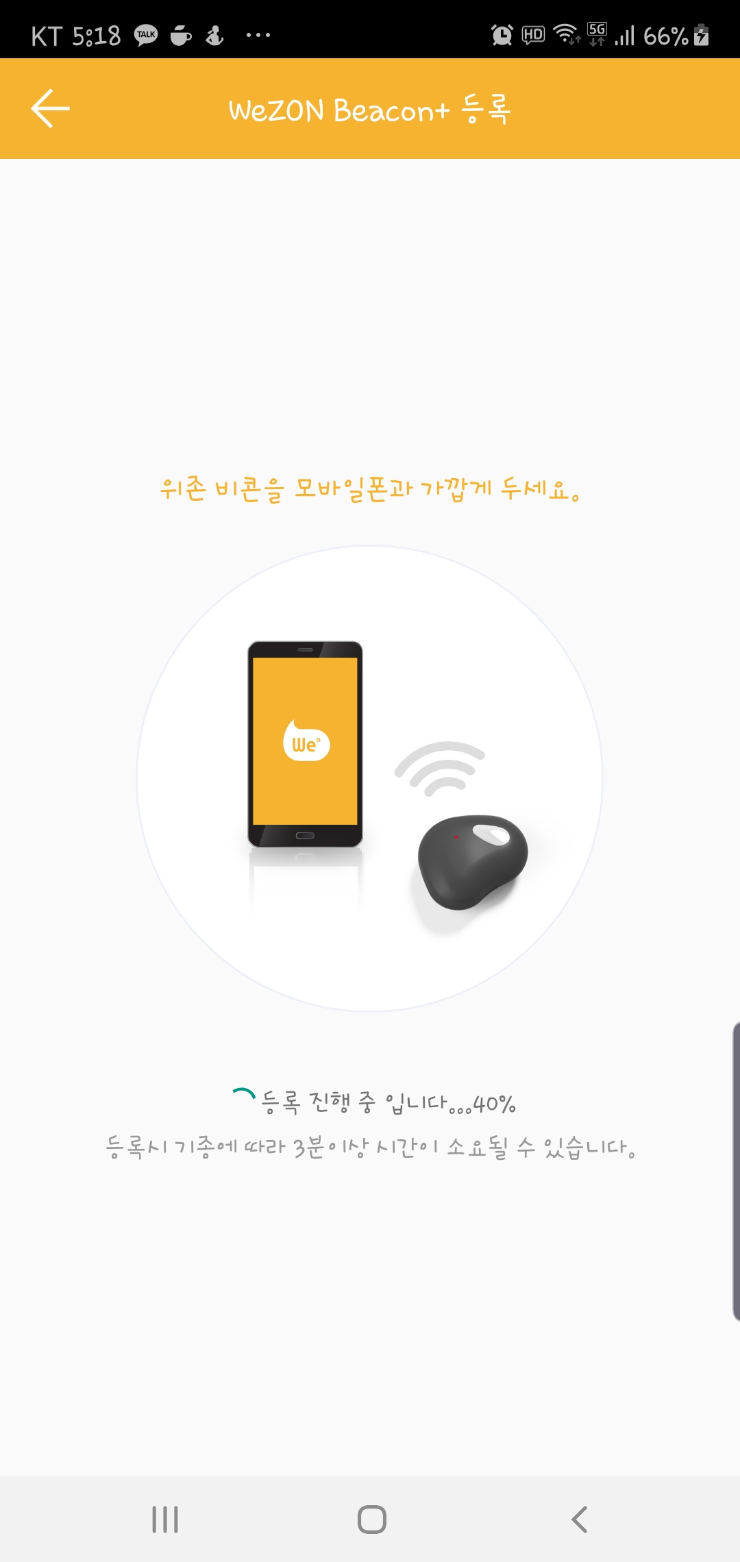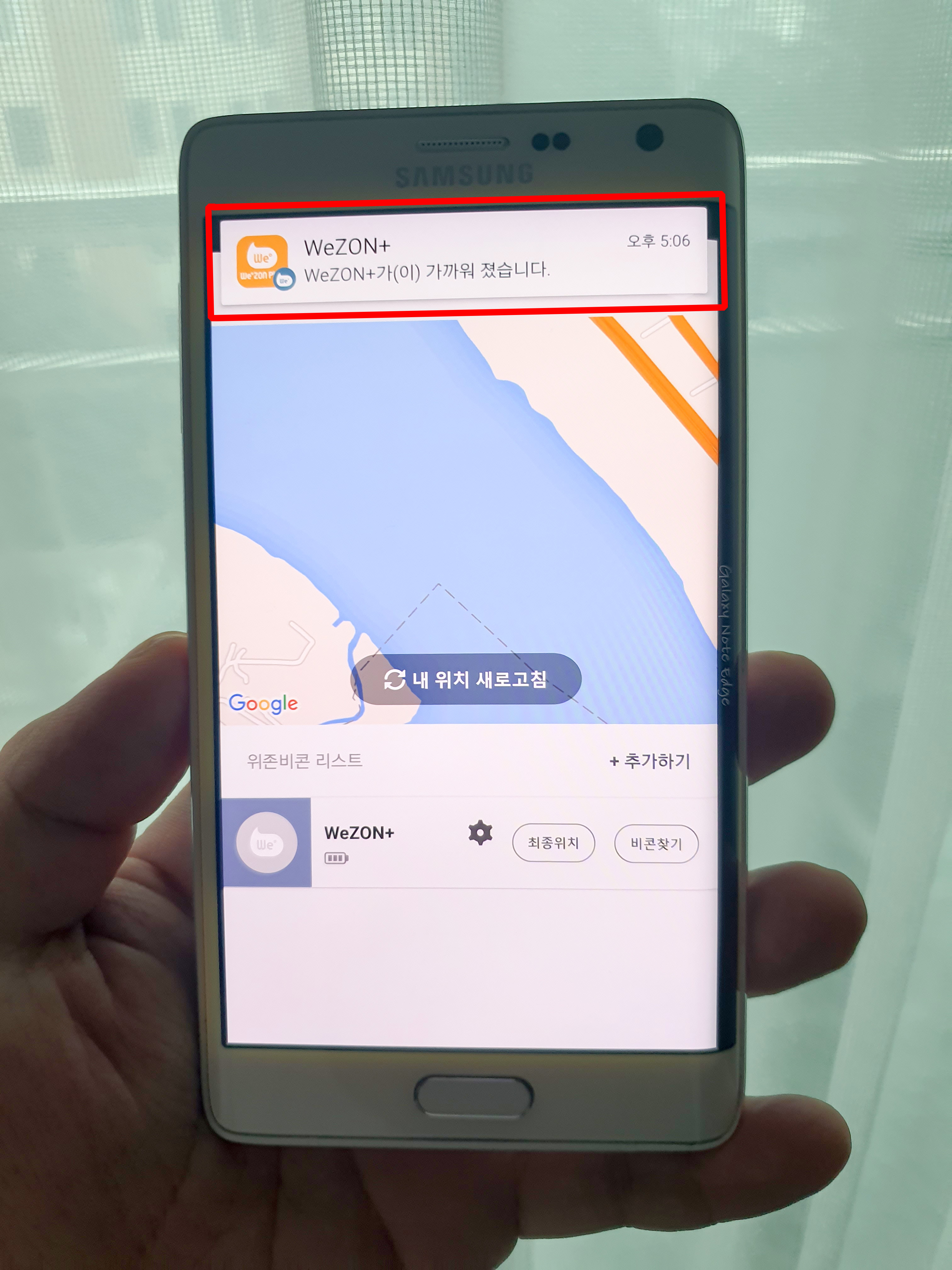 다시 가까이 다가가니 'WeZON+ WeZON+가(이) 가까워졌습니다.'라는 푸쉬 메세지를 스마트폰에 알려줍니다.