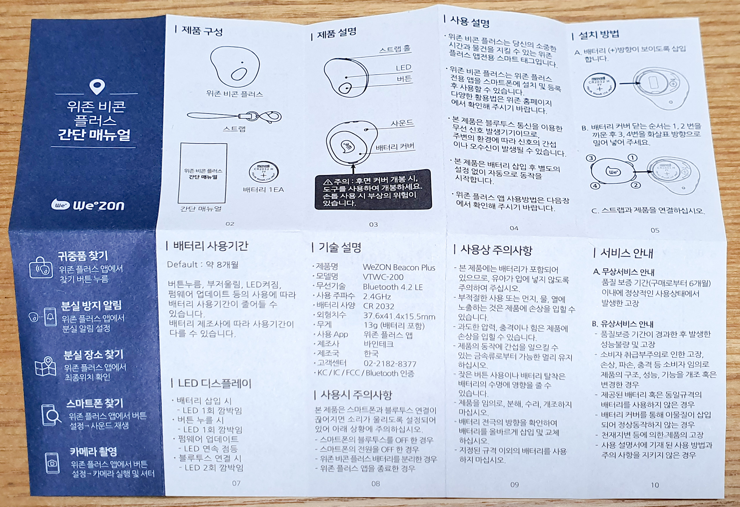 위존 비콘 플러스, 스트랩, 배터리 CR2032 3V, 간단 매뉴얼