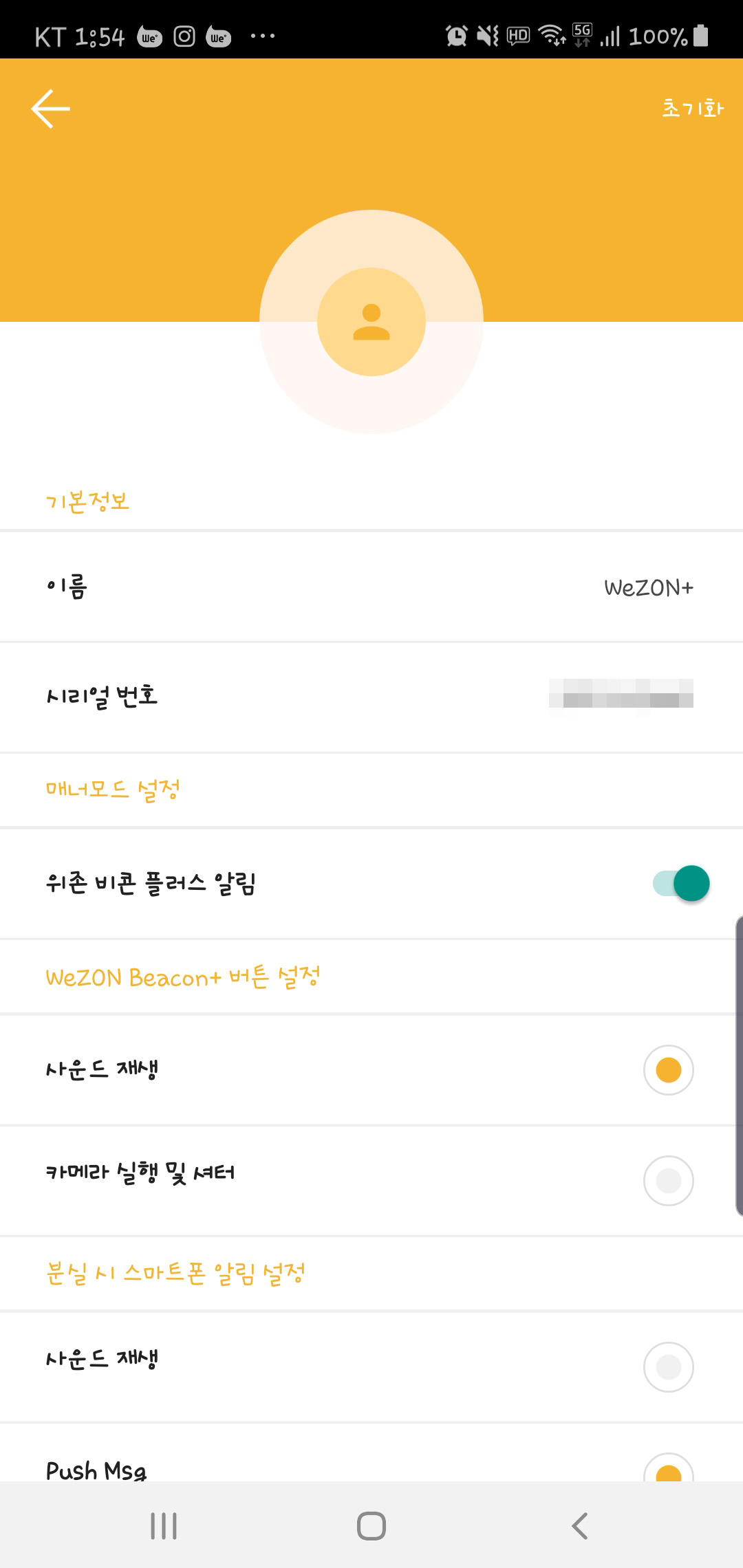 분실 시 스마트폰 알림 설정에서도 사운드를 재생시킬 것인지 Push Msg를 설정할 수 있습니다.