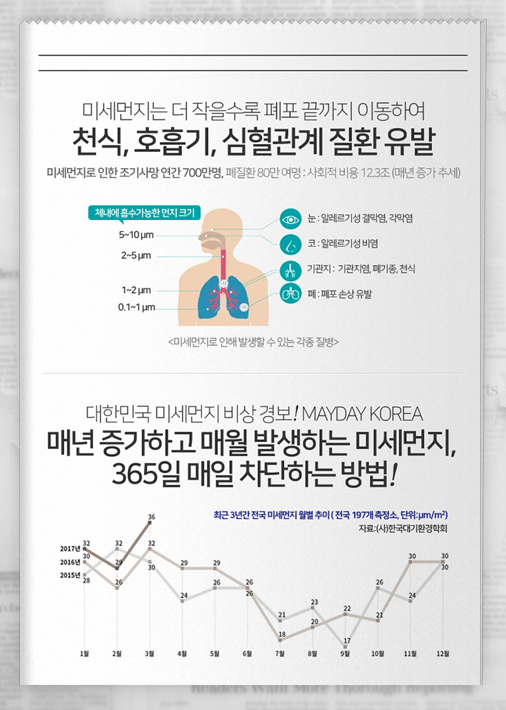 요새는 그래도 화창한 편이지만 도심에서는 자동차 매연에 미세먼지들이 항상 건강을 위협하죠!
