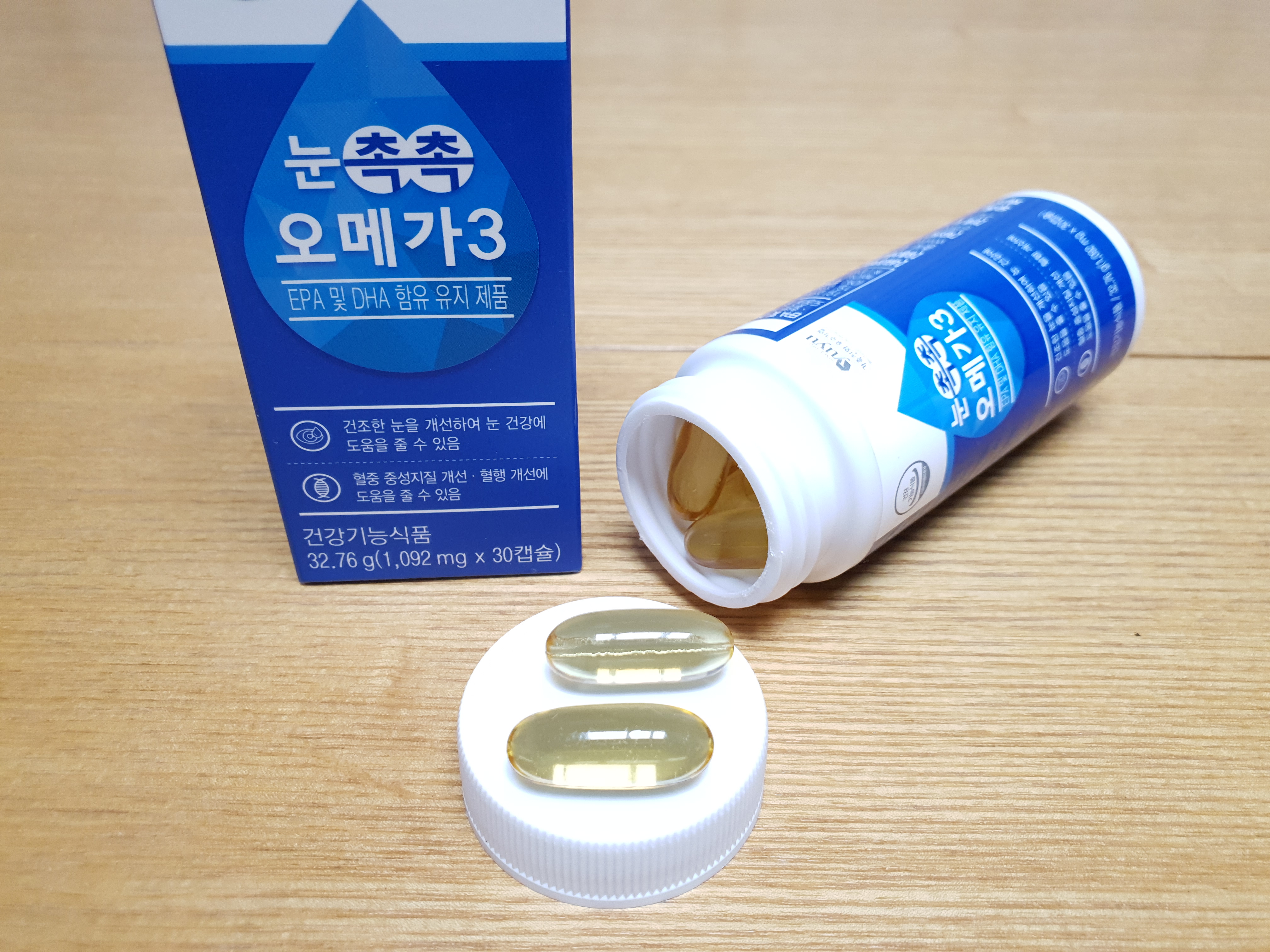 건조한 눈을 개선하여 눈 건강에 도움을 줄 수 있는 눈 촉촉 오메가3는 EPA 및 DHA 함유 유지 인체적용시험을 하였습니다.